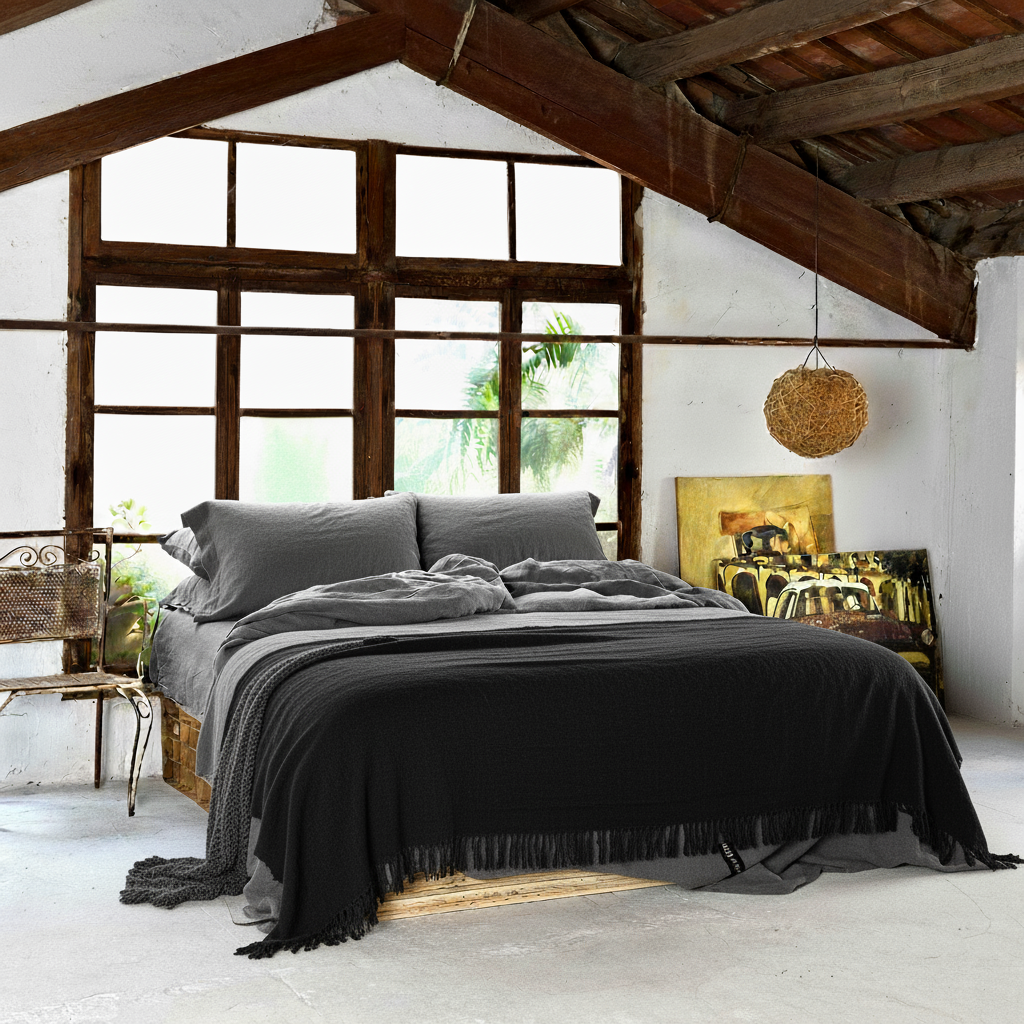 A pure linen bedding set will make you live with beauty and dream like never before. Extremely soft, this bedding set will make your bedroom feel comfortable and full of character. Our bedding sets are handmade, one by one, with a wide cut of fabric for a more beautiful effect.