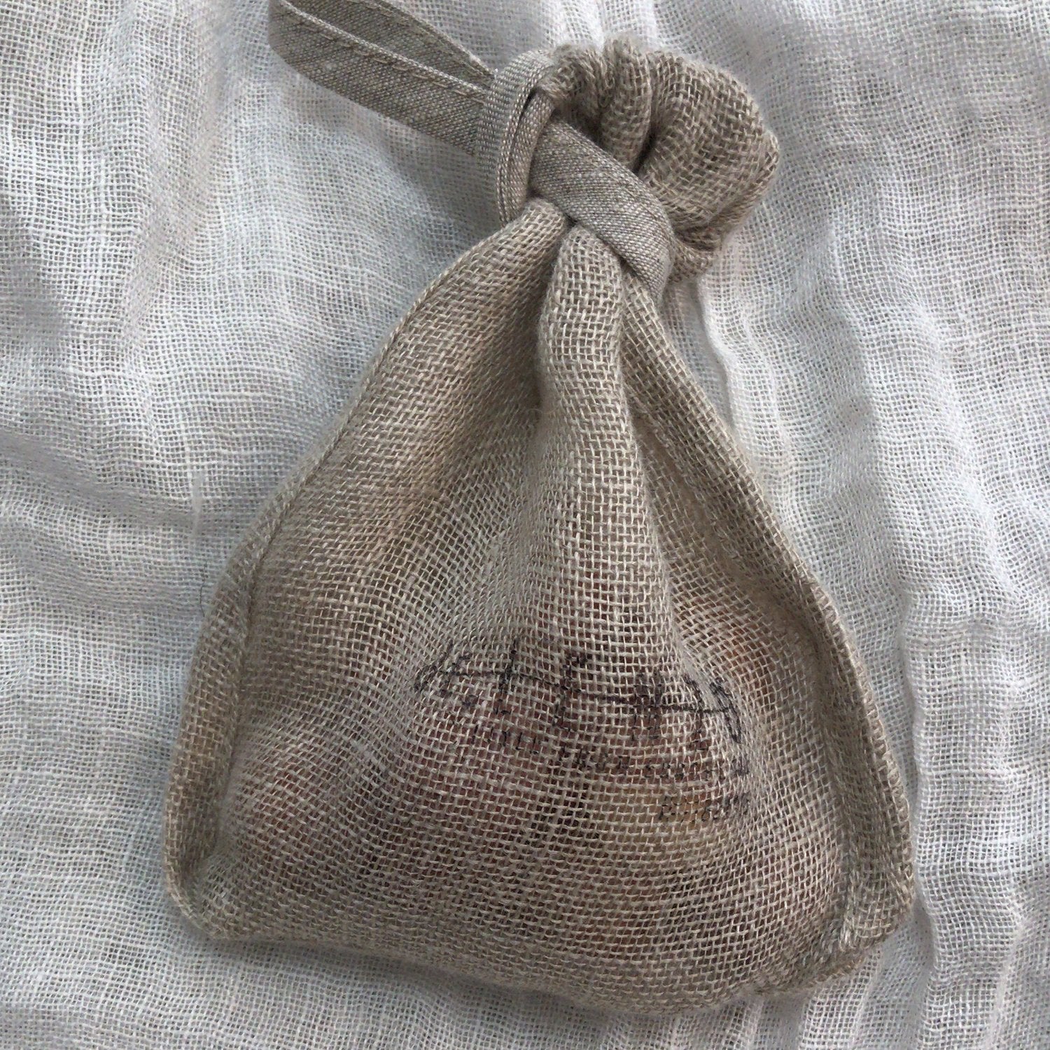 10 unidades de aros de madera de cedro con bolsita de 100% puro lino.