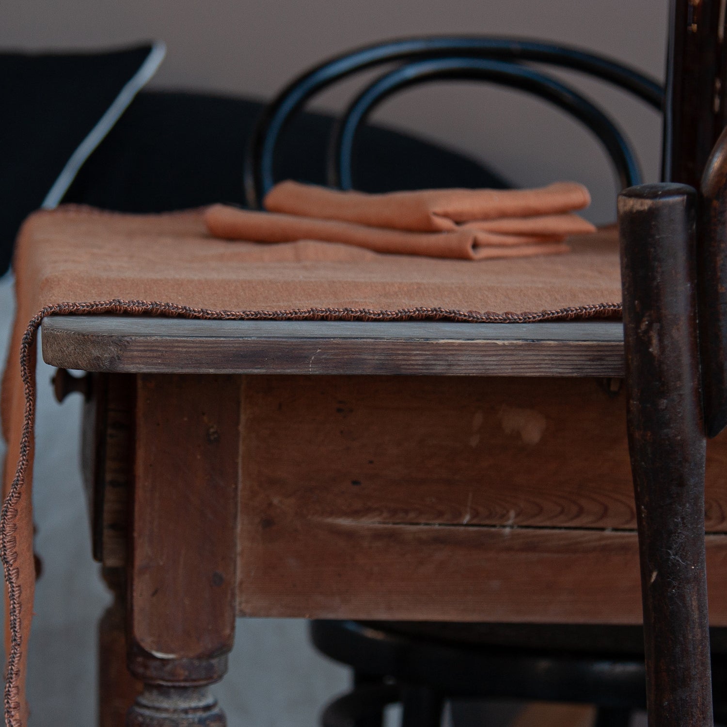 Los amplios caminos de mesa MARIETA, llevan dos servilletas a juego con repulgo del mismo color. Con un tamaño de 60cm x 170cm te hará el papel de un mantel dejando ver parte de la mesa. Son nuestra colección más artesana.