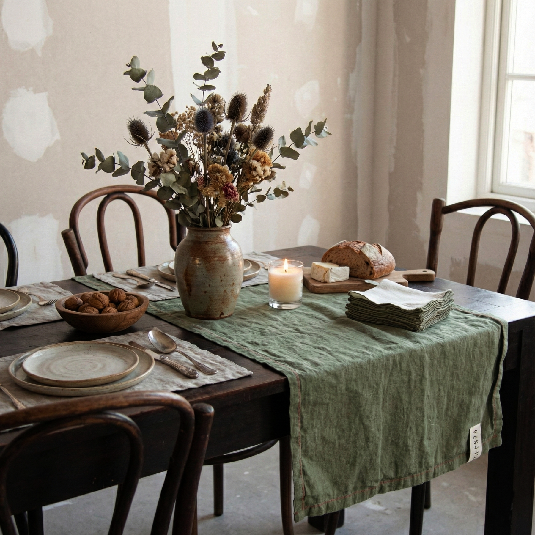 El camino de mesa ideal es el que cuelga 30cm a cada lado de tu mesa.