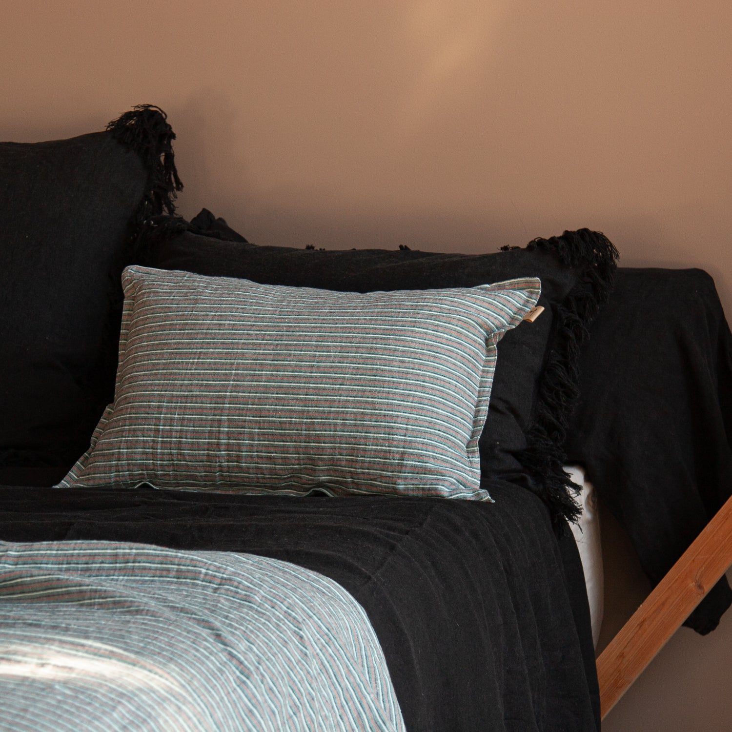 Puedes añadir el pie de cama a juego con su relleno de lana, Ideal para combinarlo con negros, teja, granate...