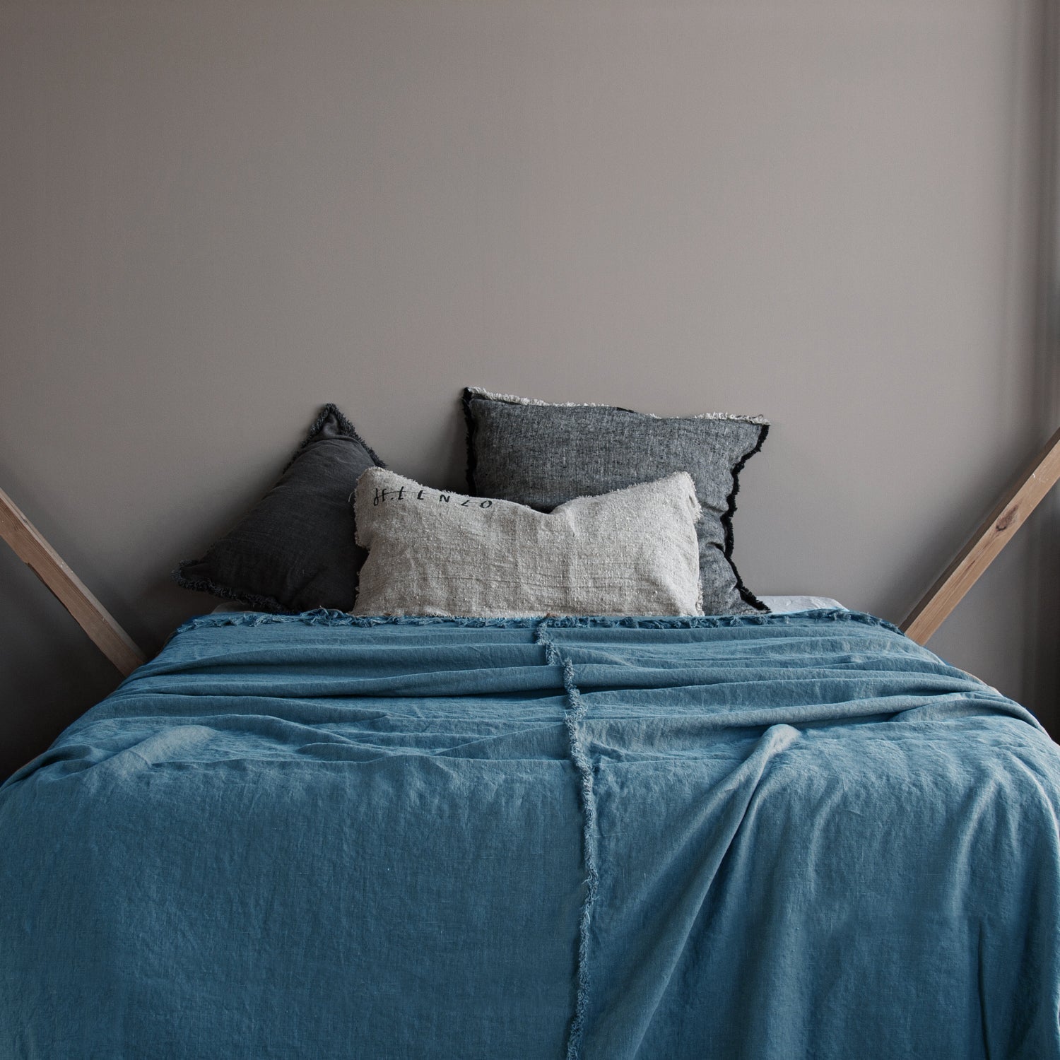 100% lino lavado Europeo de 420gr/m2 confeccionado en España.