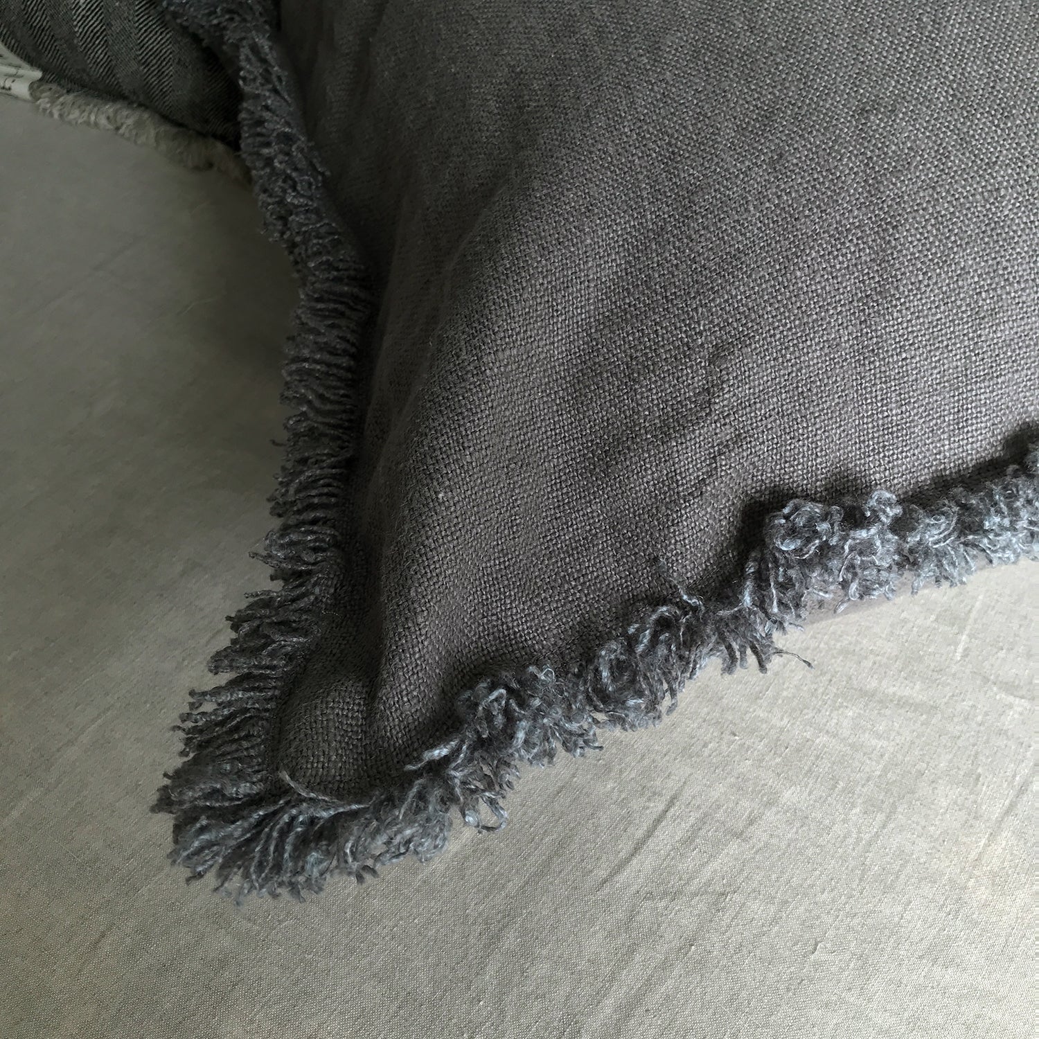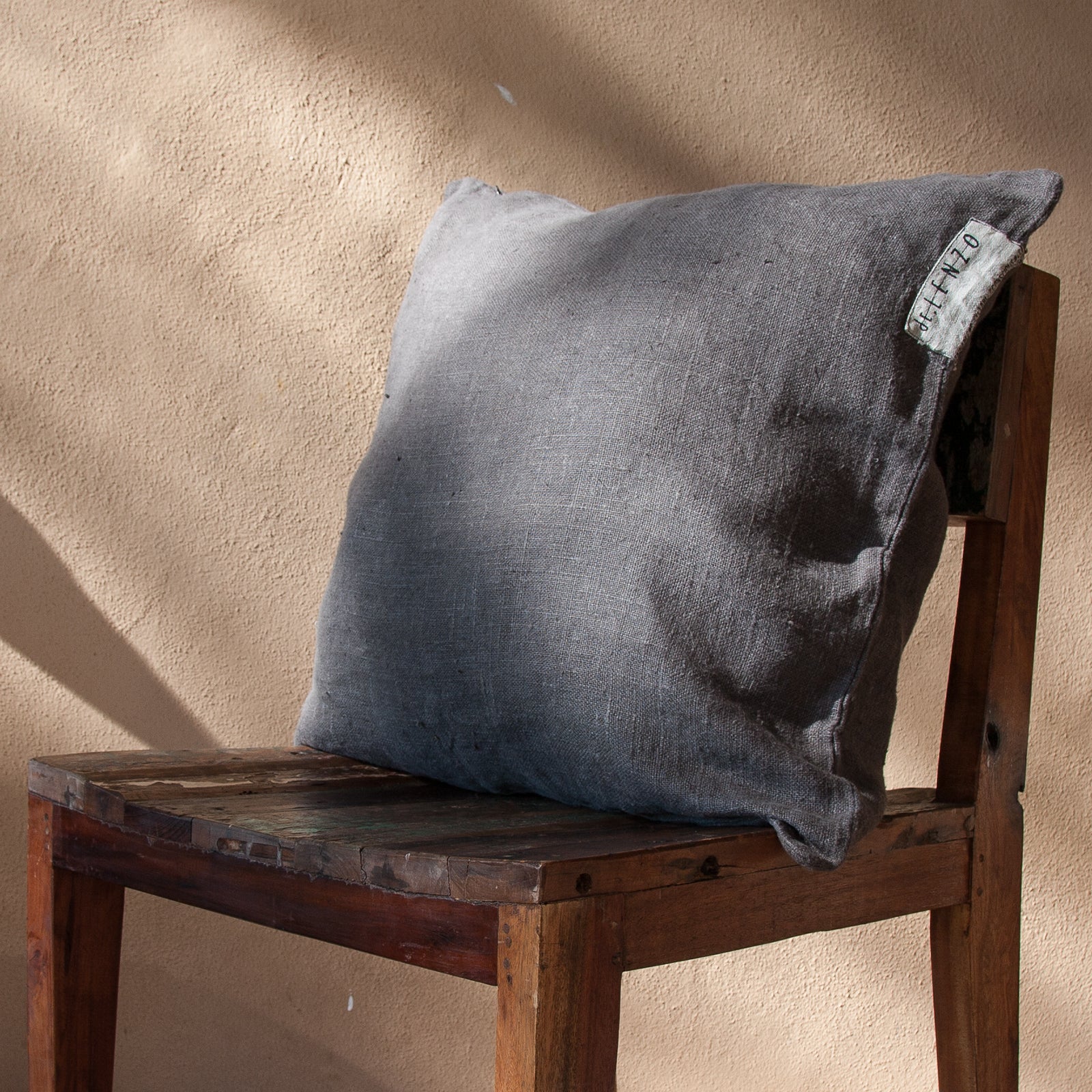 Cojín de lino con diferentes acabados.