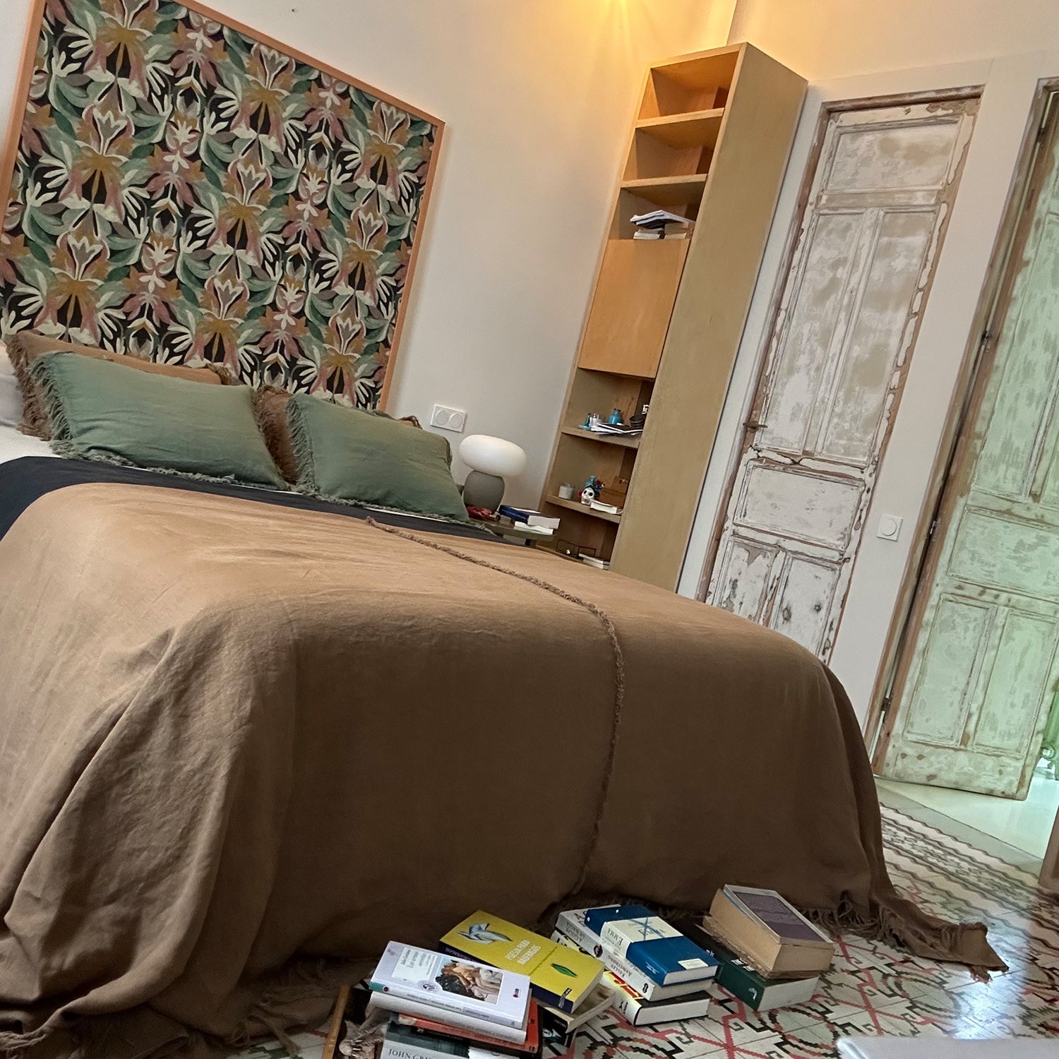 Cojín de 270gr/m2. De color verdeo olivo, con un lino lavado de un tacto extraordinario. Ideal para combinar con tejidos de colores naturales, grises, y terracotas. Y por supuesto con las colchas Marrakech o las colchas clásicas.