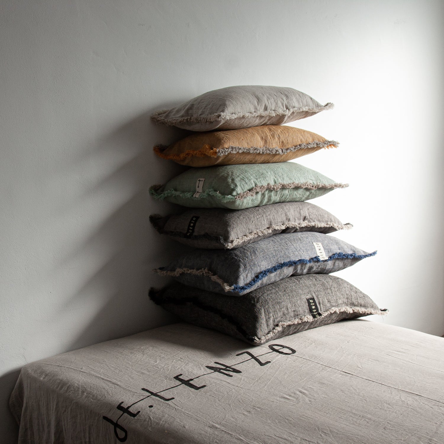 Confeccionados artesanalmente con nuestro lino espigado gris y natural de 100%lino; suave, apto para lavadora y secadora. Combina muy bien con nuestros linos de cama; Teja, blanco perla, blanco, gris , negro, berenjena y malva.