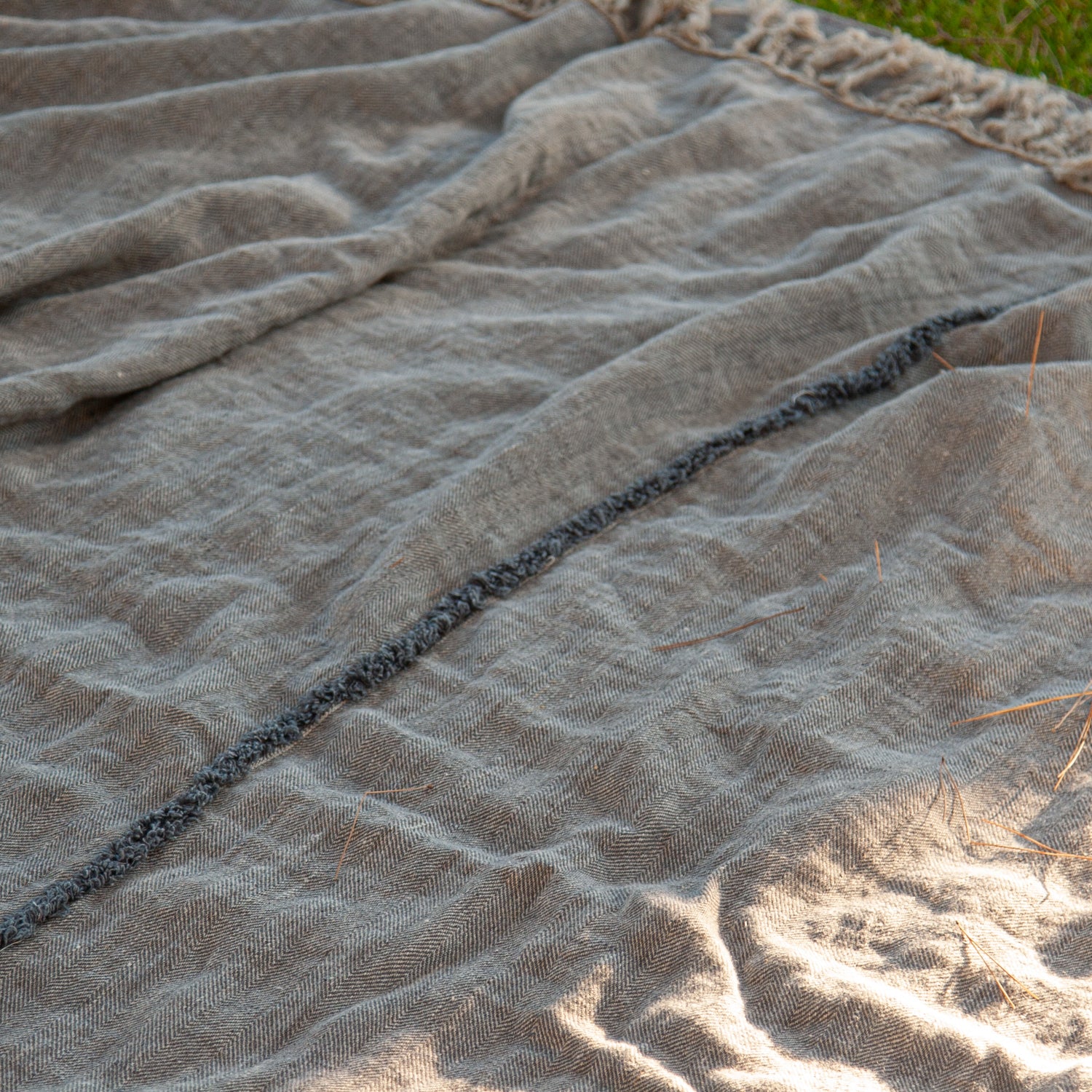 Colcha de lino 100% desflecada tanto en su versión plaid para pie de cama, como en la opción colcha.