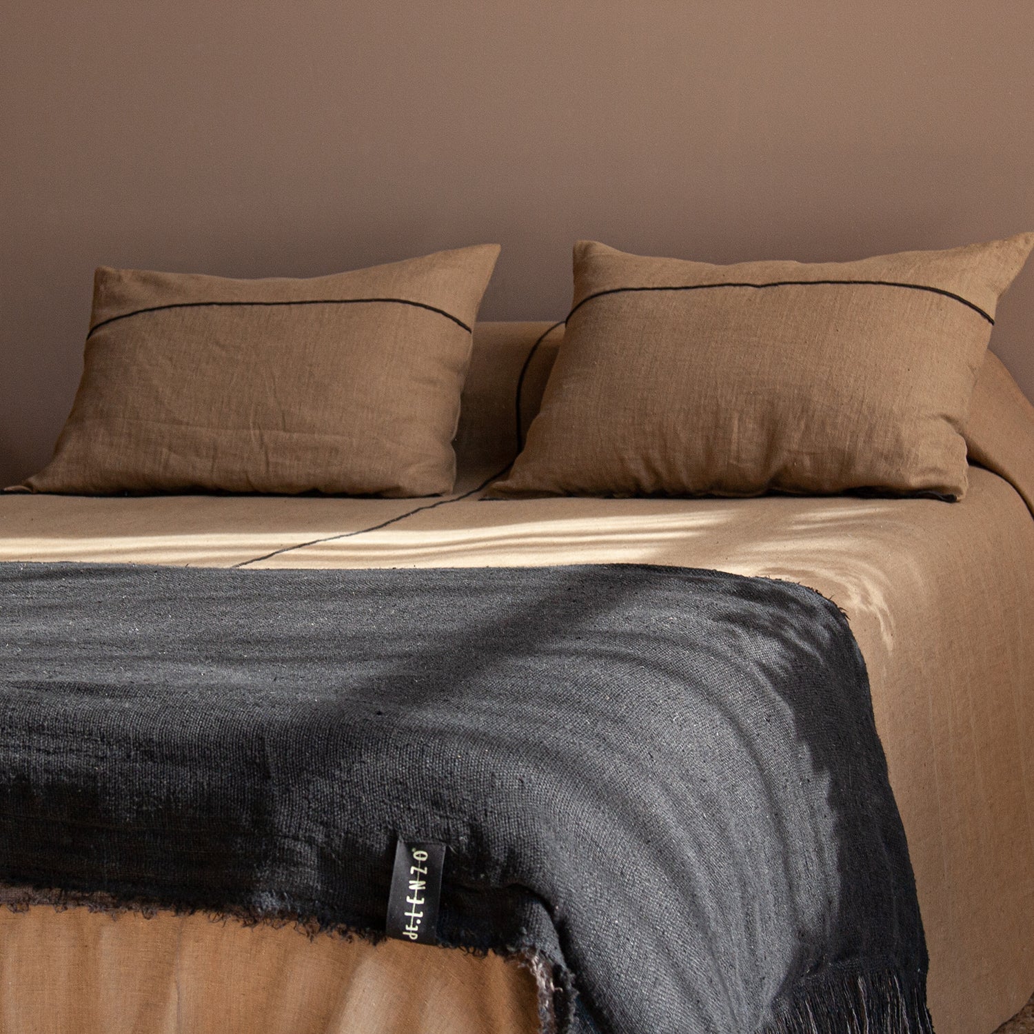 Colcha y Plaid de lino lavado CLÁSICO MARRÓN