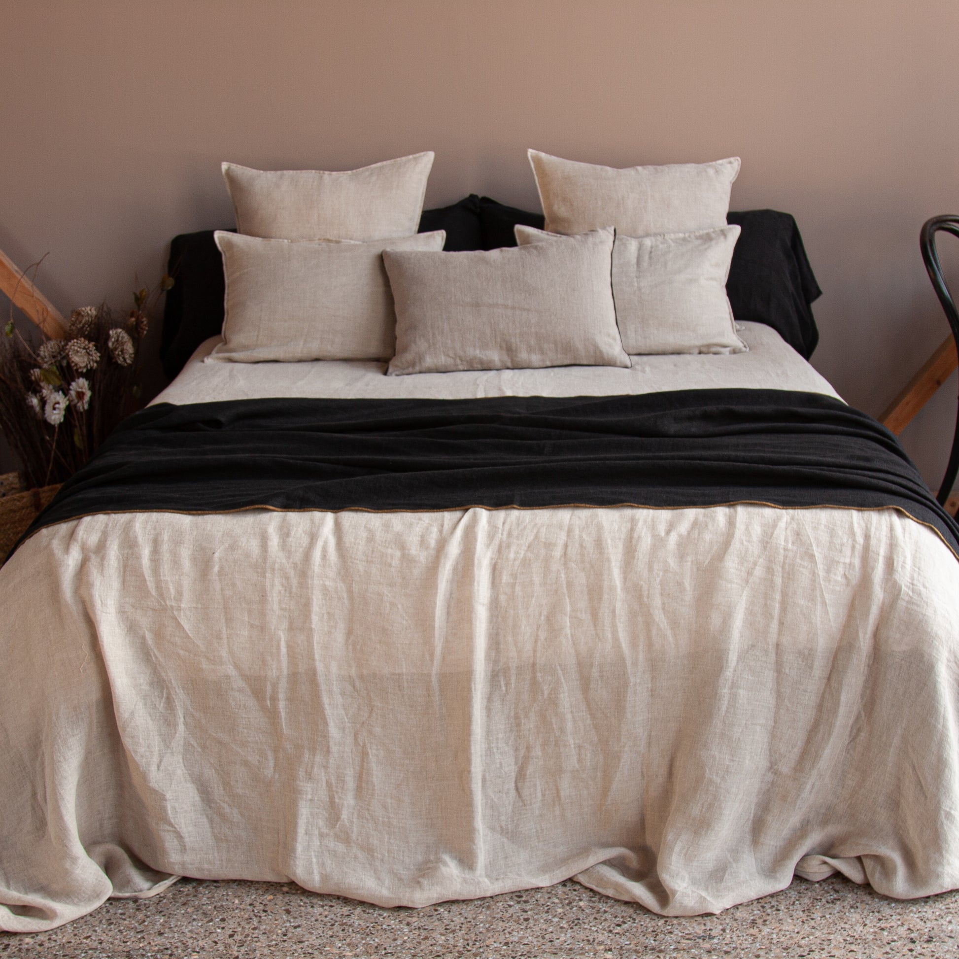 Colcha y Plaid de lino lavado CLÁSICO NEGRO