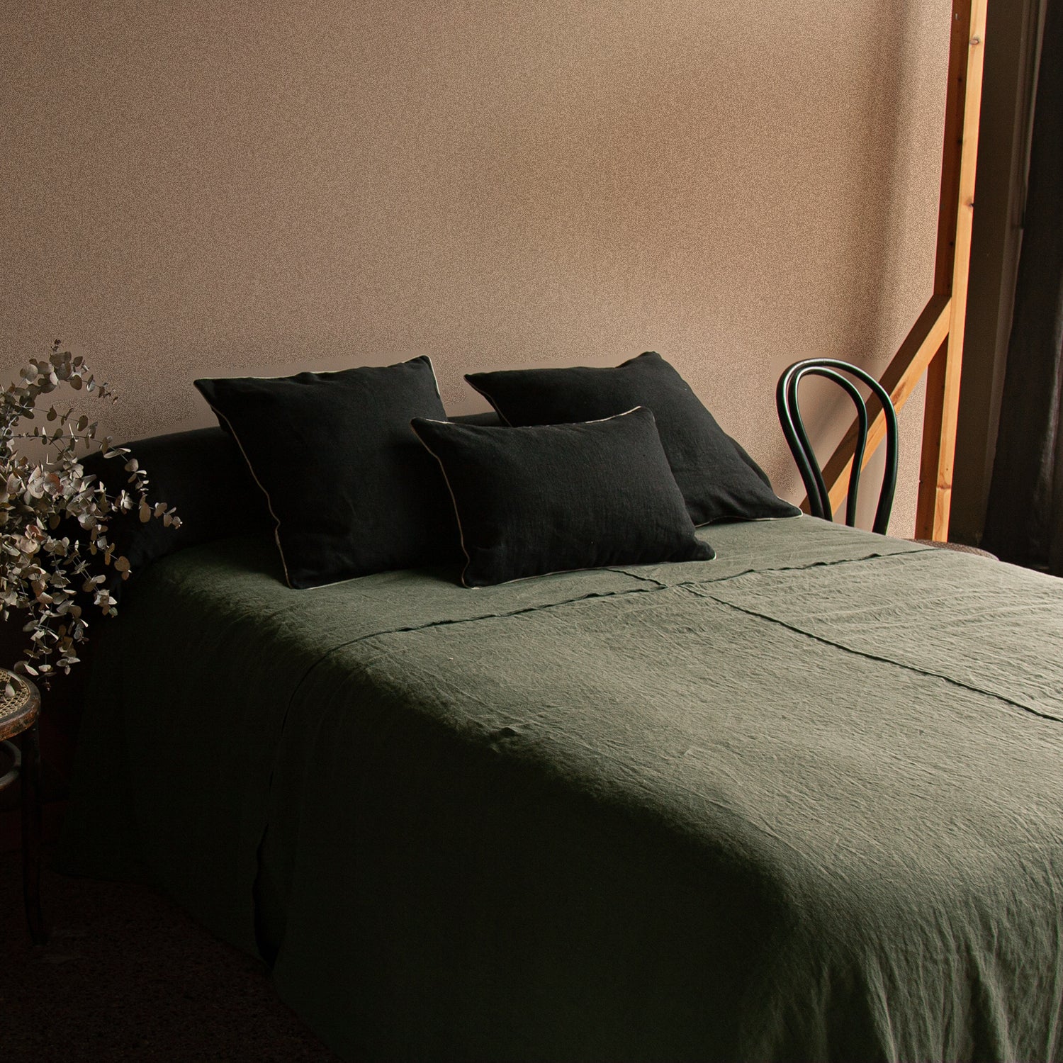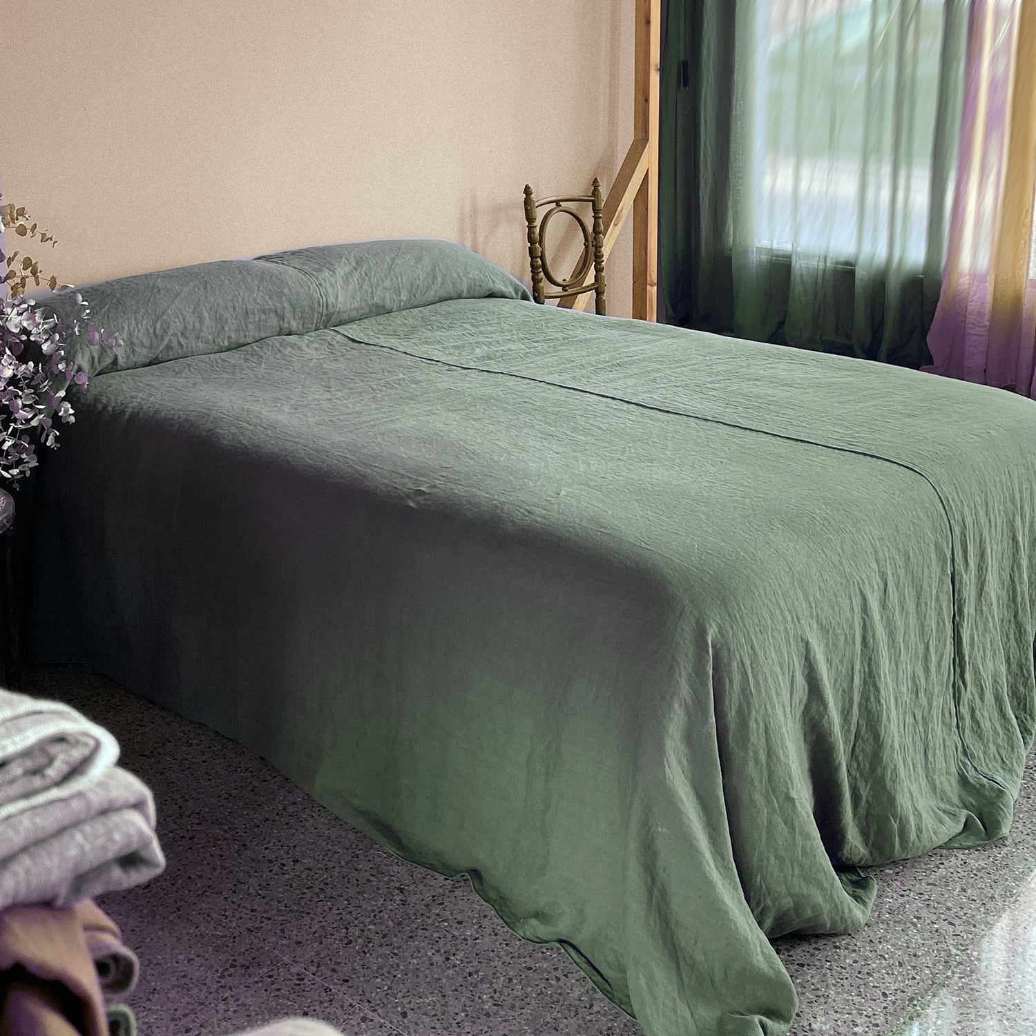 Colcha y Plaid de lino lavado CLÁSICO VERDE