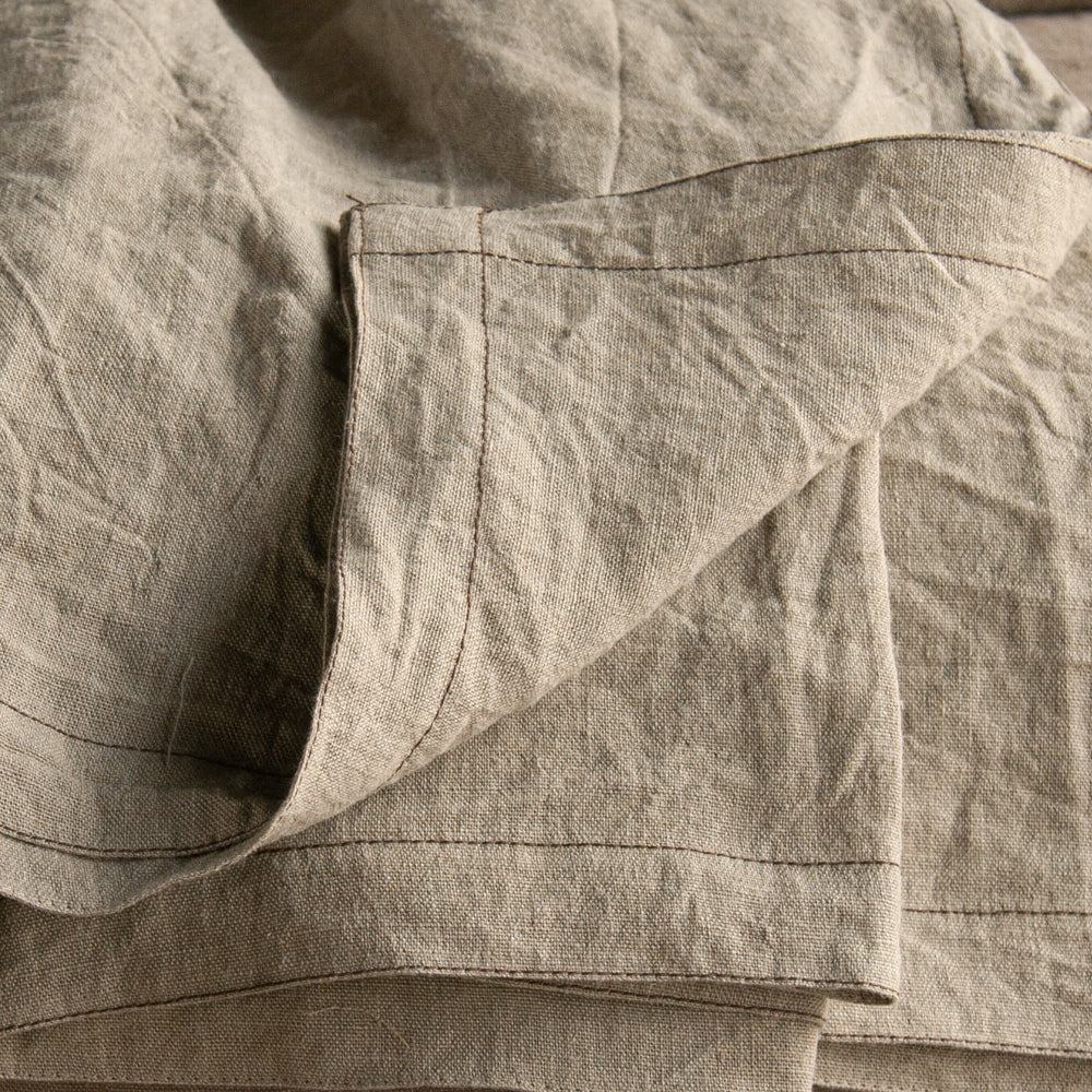 Colchas de lino sencillas, de 240gr/m2. Fácil, lavado, planchado y secado en secadora. Con pespunte de color y efecto Vintage arrugado.
