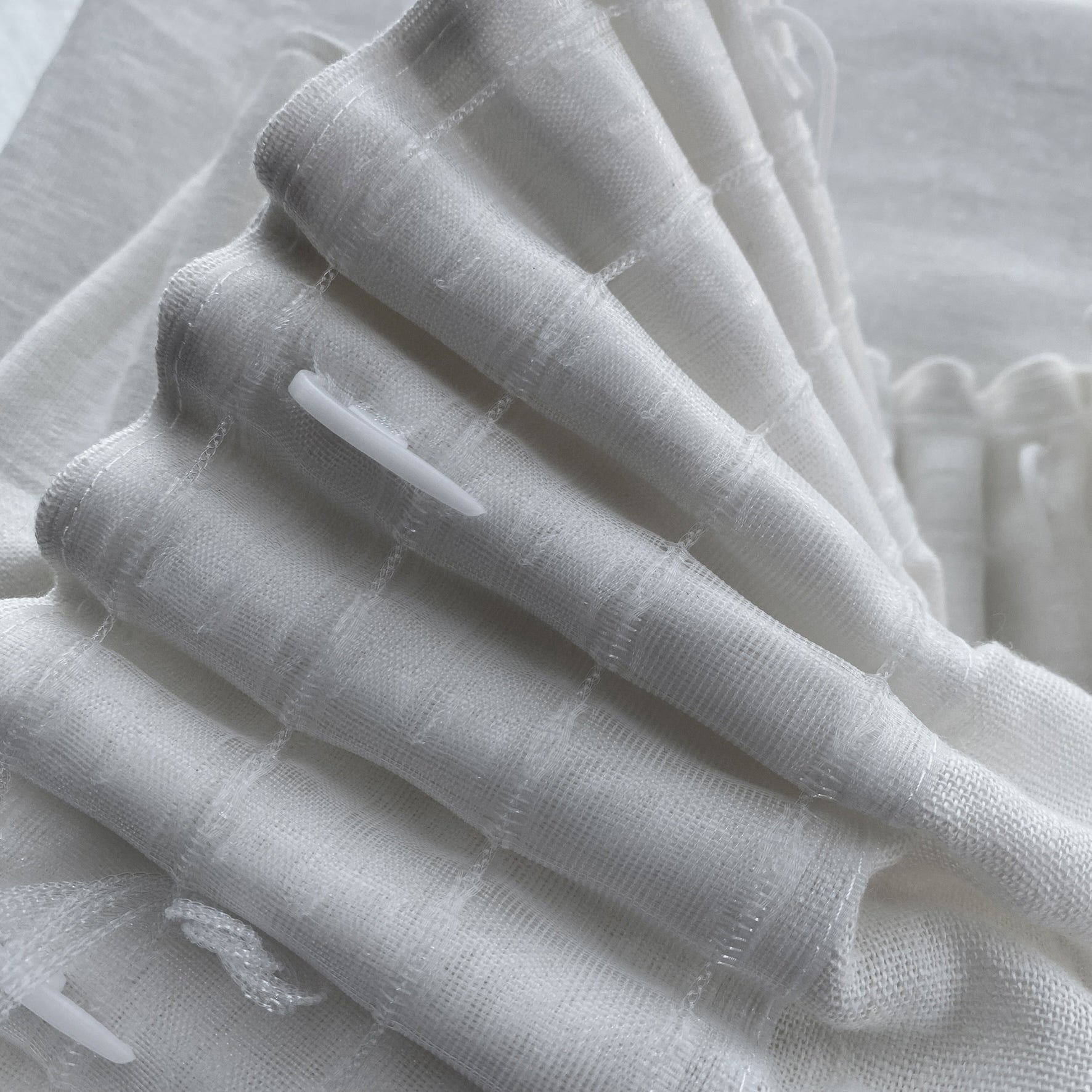 Cortina blanco suave. Con una caída pesada y con cuerpo. Con 240/270gr/m2, son casi opacas.