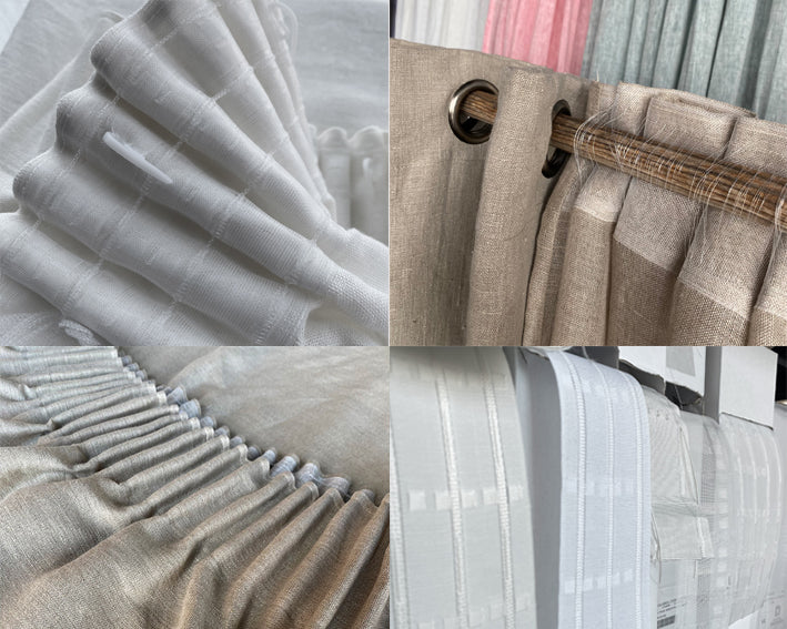 Realizamos varios tipos de confecciones. Con cintas fruncidoras, con cintas tejidas para barra, para poner pinzas, con lazos.