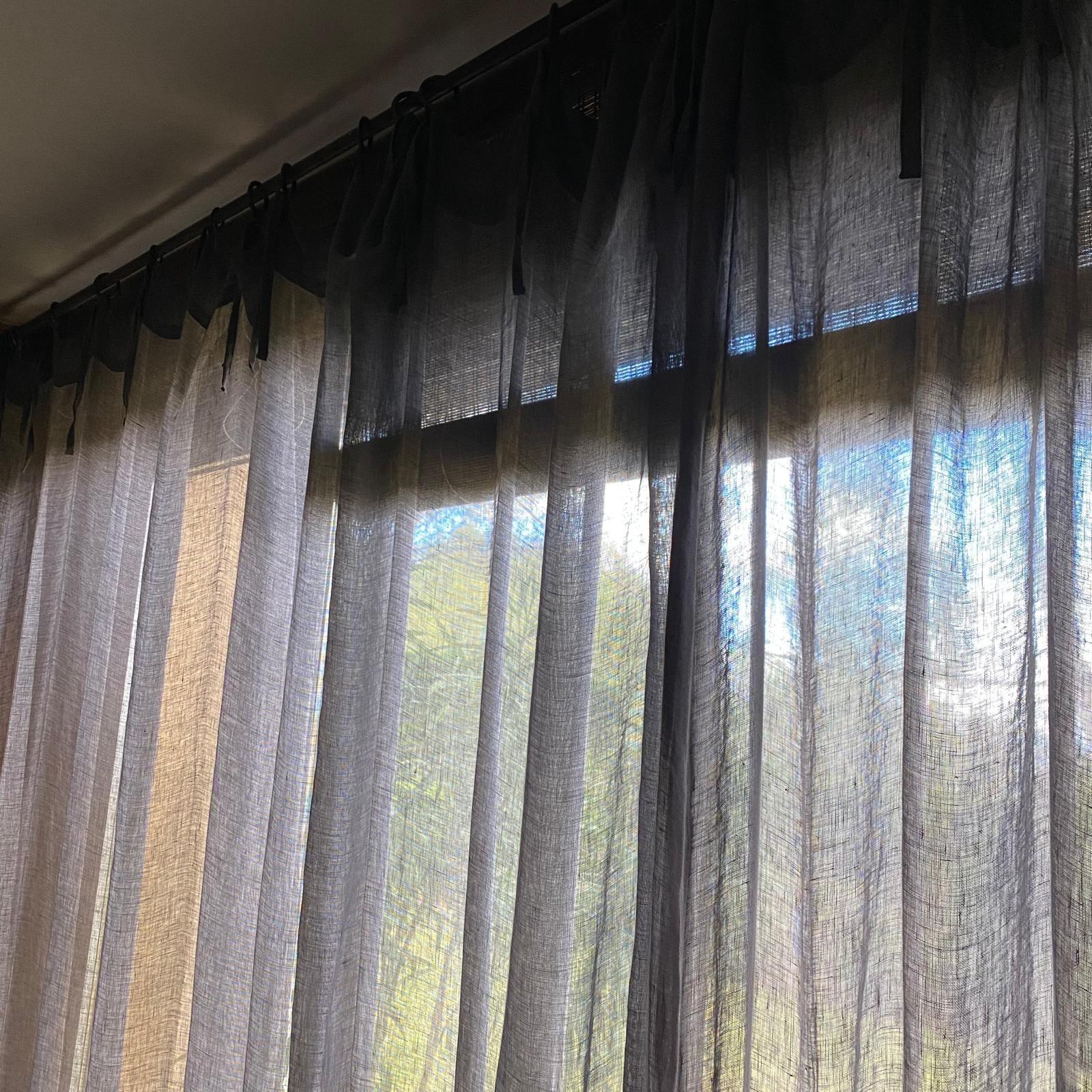Nuestras cortinas Peggy son las más finas de todas Tienen la transparencia justa para que te pase la luz y vislumbres a través de ellas. En la primera imagen se puede ver la diferencia con el lino natural.