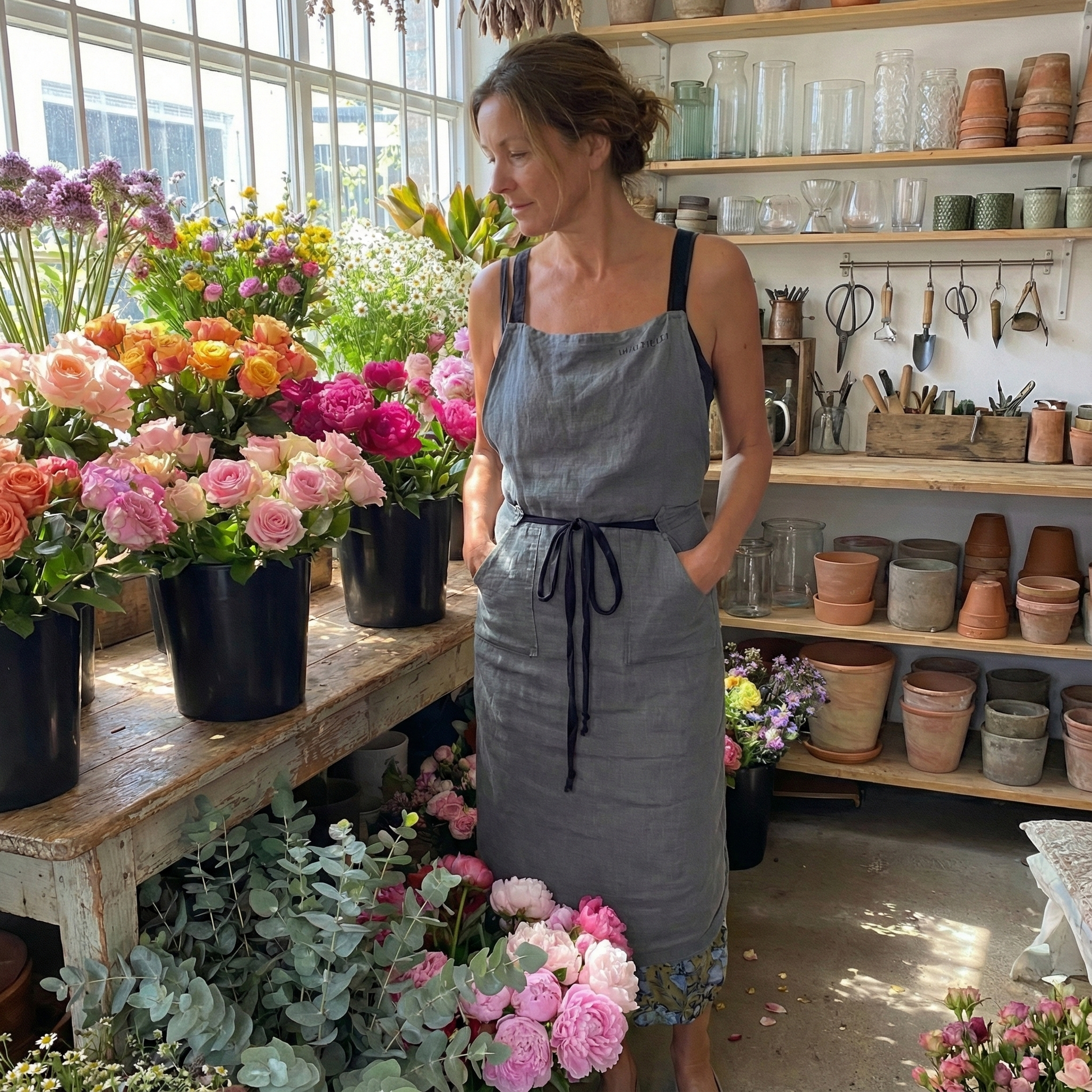 Nota: Tienes la opción de atar el delantal tanto por la parte de delante como por la de detrás. La cinta de algodón la cortamos larga, para que puedas ajustarte como quieras el dE.LANTAL...¡Se adapta a tu estilo y a cualquier forma corporal!