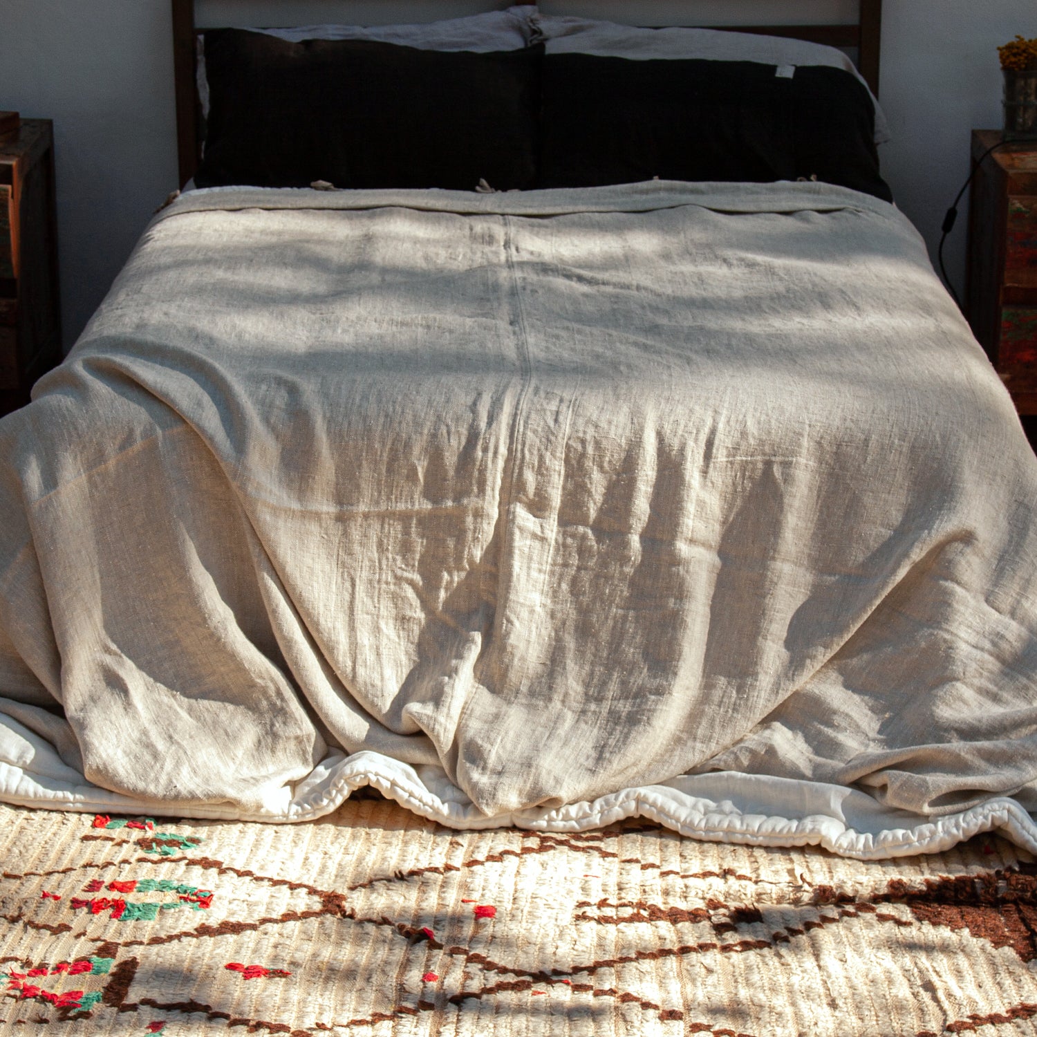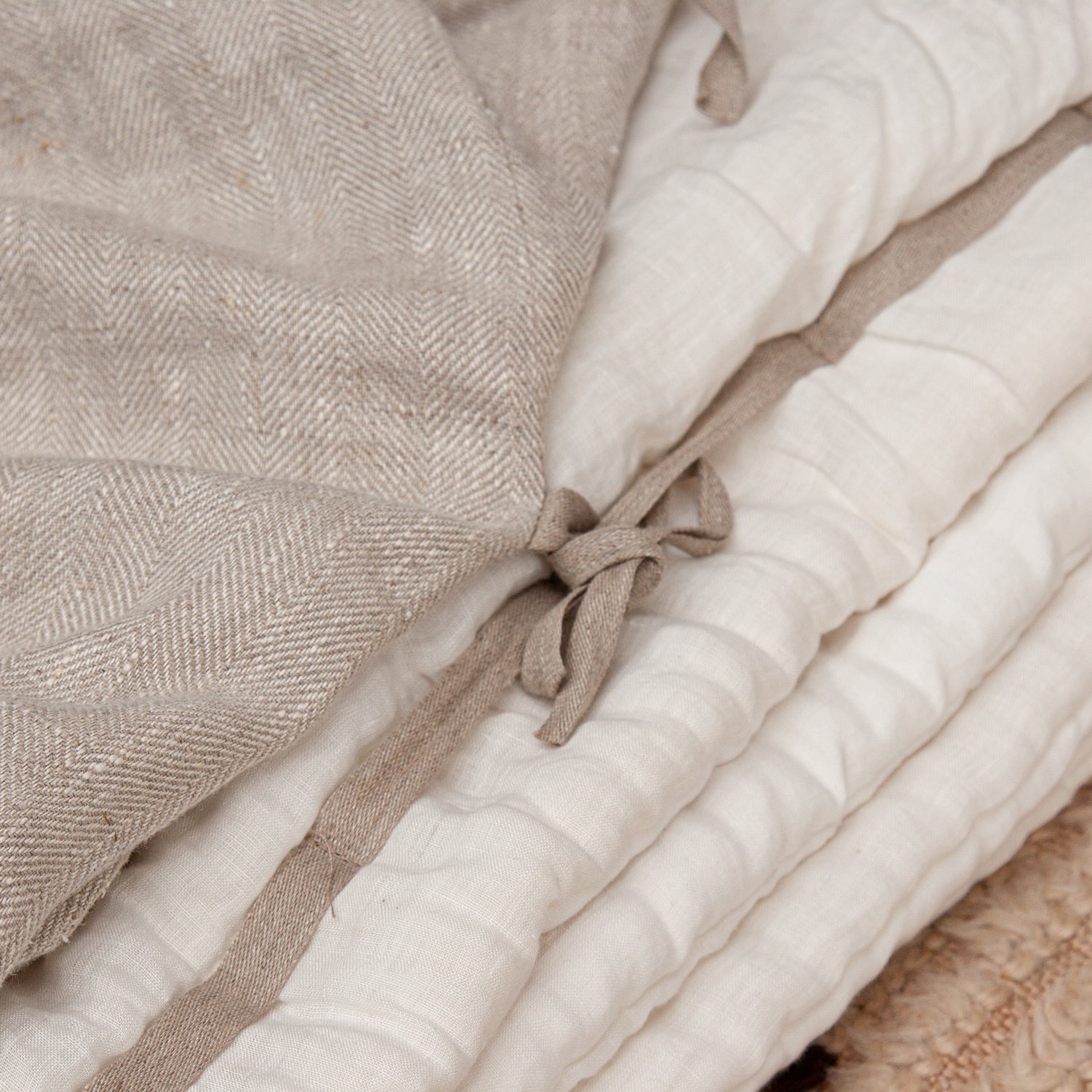 Para utilizarlo como relleno para el interior de tu funda nórdica o a modo de manta para las colchas de lino. Con exterior de 100% lino lavado y ribeteado con cinta de lino en el modelo para plaid, podrás ajustarlo.