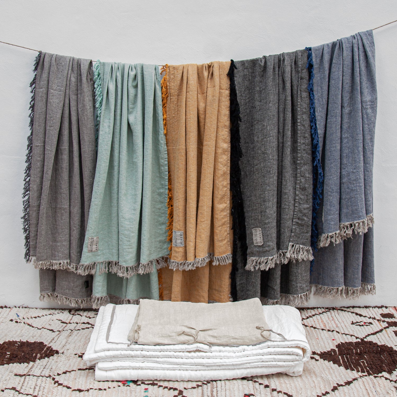 Algunos de nuestros cojines, están cosidos con lino rústico de hasta 350gr/m2, y nuestras toallas con rizo de lino y base de algodón, exfolian tu piel de la forma más natural posible.