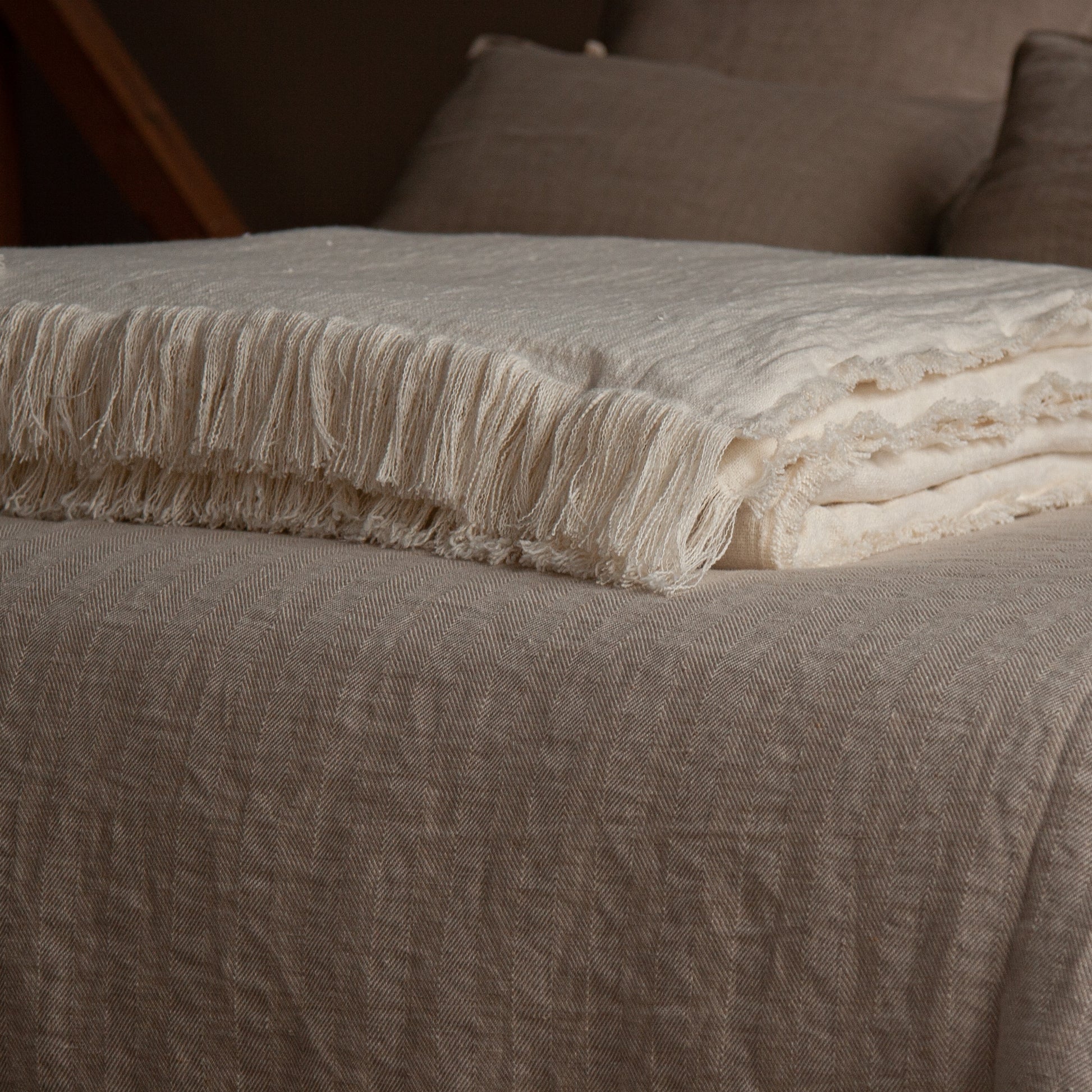 El pie de cama de colección Formentera con sus 320gr/m2 le dará un aíre muy rústico a tu cama. Ideal para decoraciones especiales; camas rústicas y para los muy amantes del lino. El relleno es standard de fibra y algodón desenfundable.