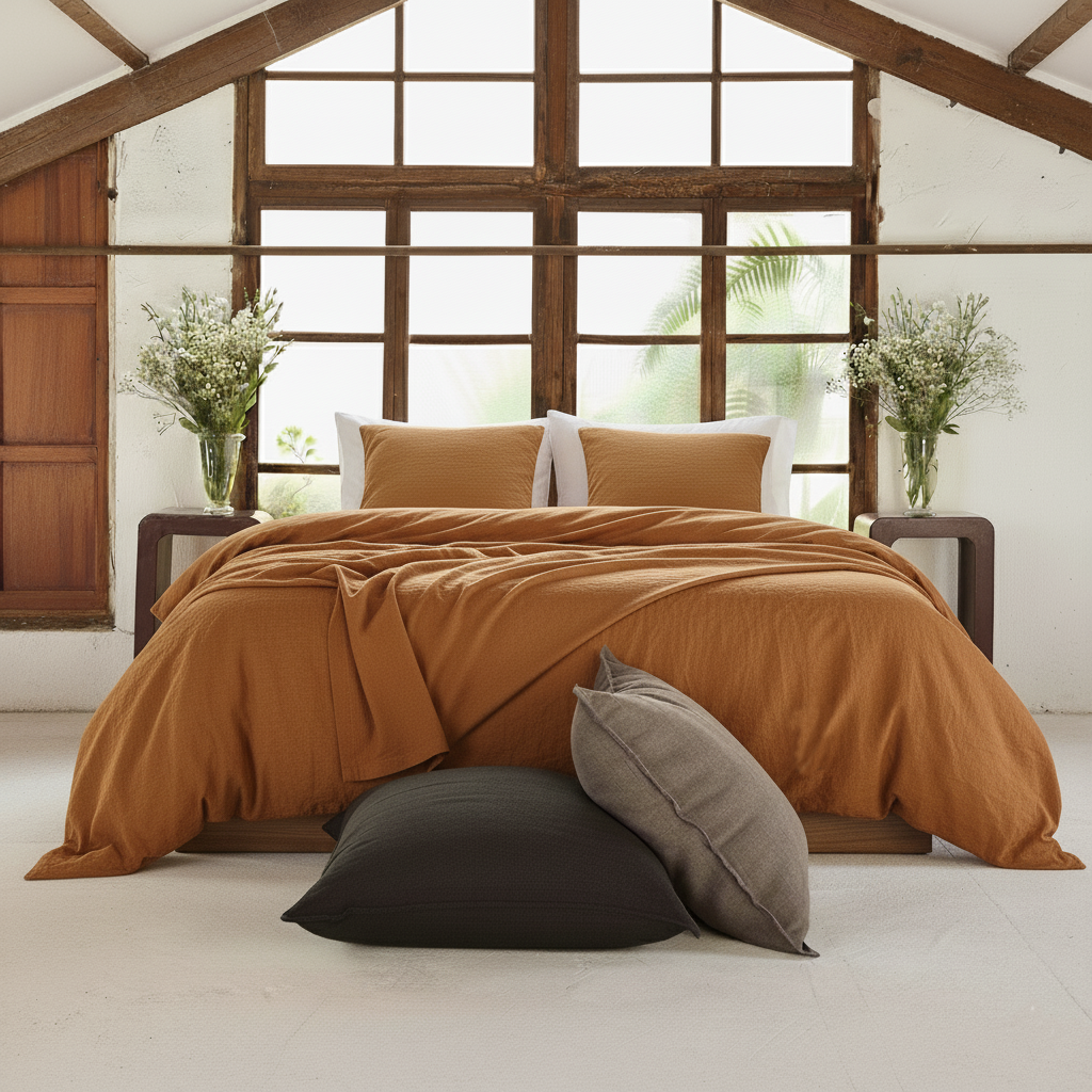 Ves haciendo tu juego de cama poco a poco, combiando colores del mismo lino.