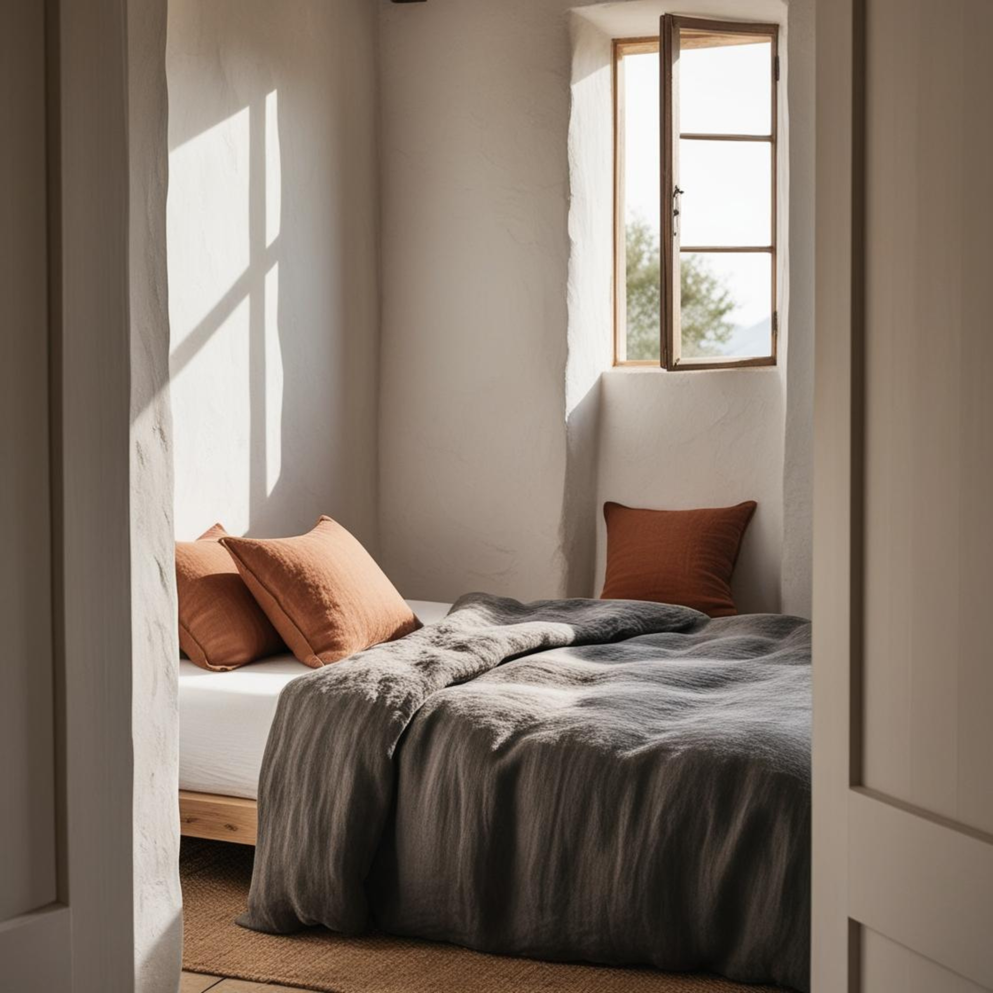 Ves haciendo tu juego de cama poco a poco, combiando colores del mismo lino.
