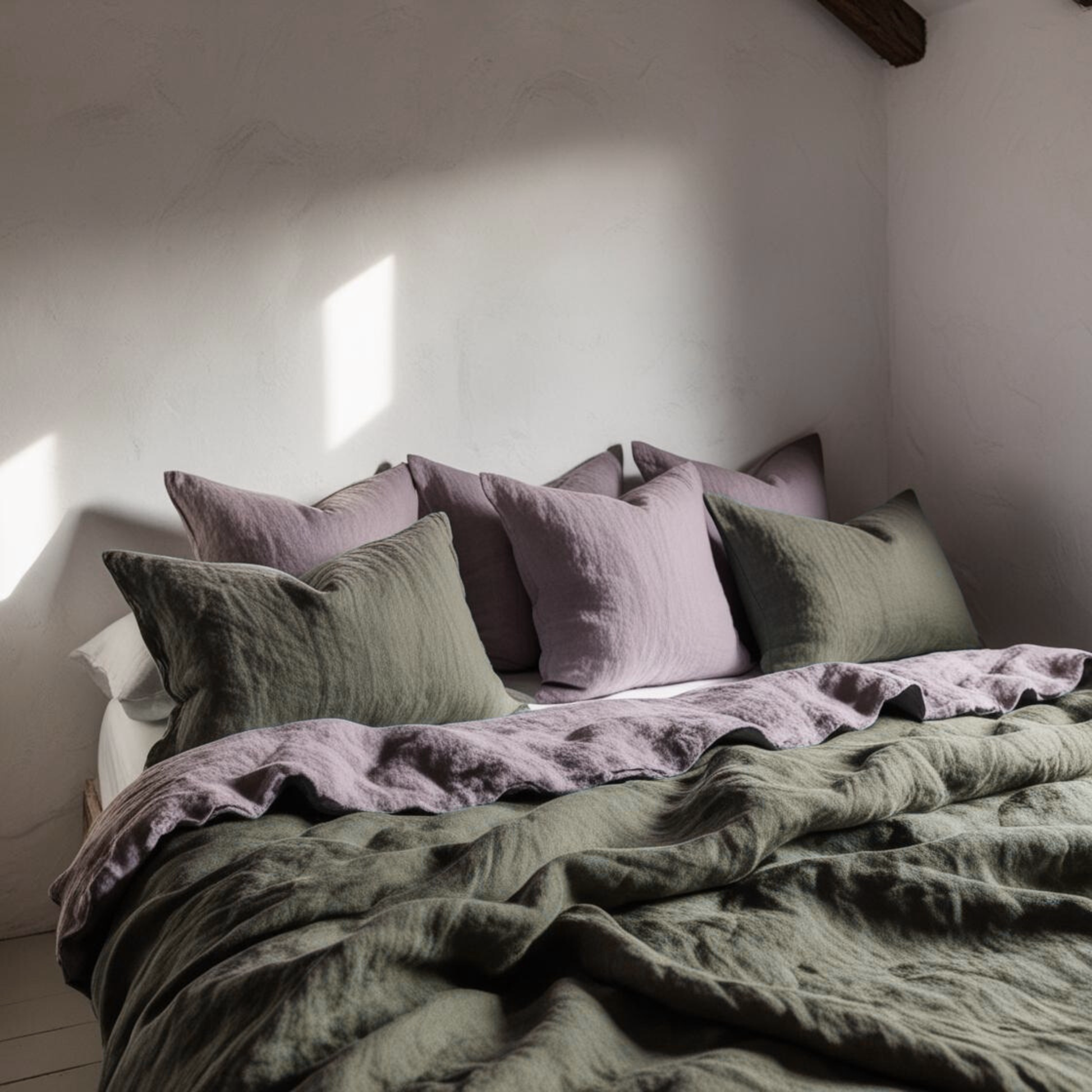 Ves haciendo tu juego de cama poco a poco, combiando colores del mismo lino.