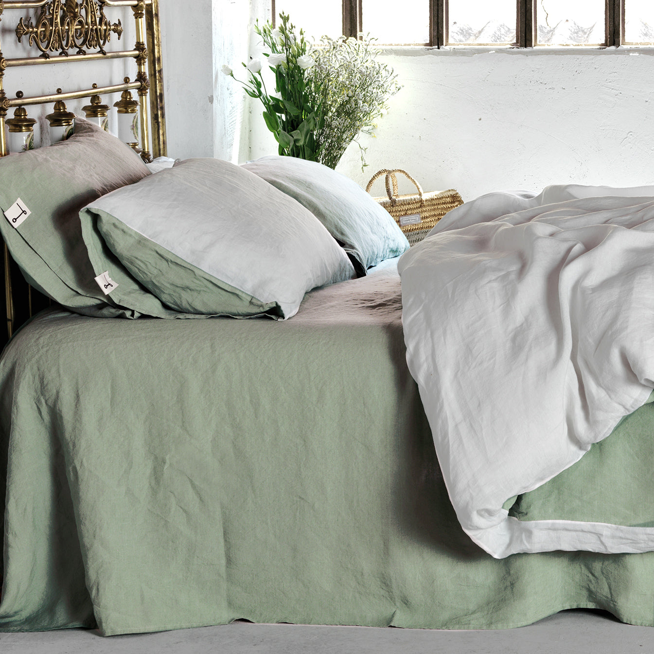 Funda nórdica reversible bicolor de lino verde y blanco. Está confeccionada con cremallera invisible lo que permite que la pongas del color que sea, no se nota. Puedes elegir cualquier verde de los que tenemos.
