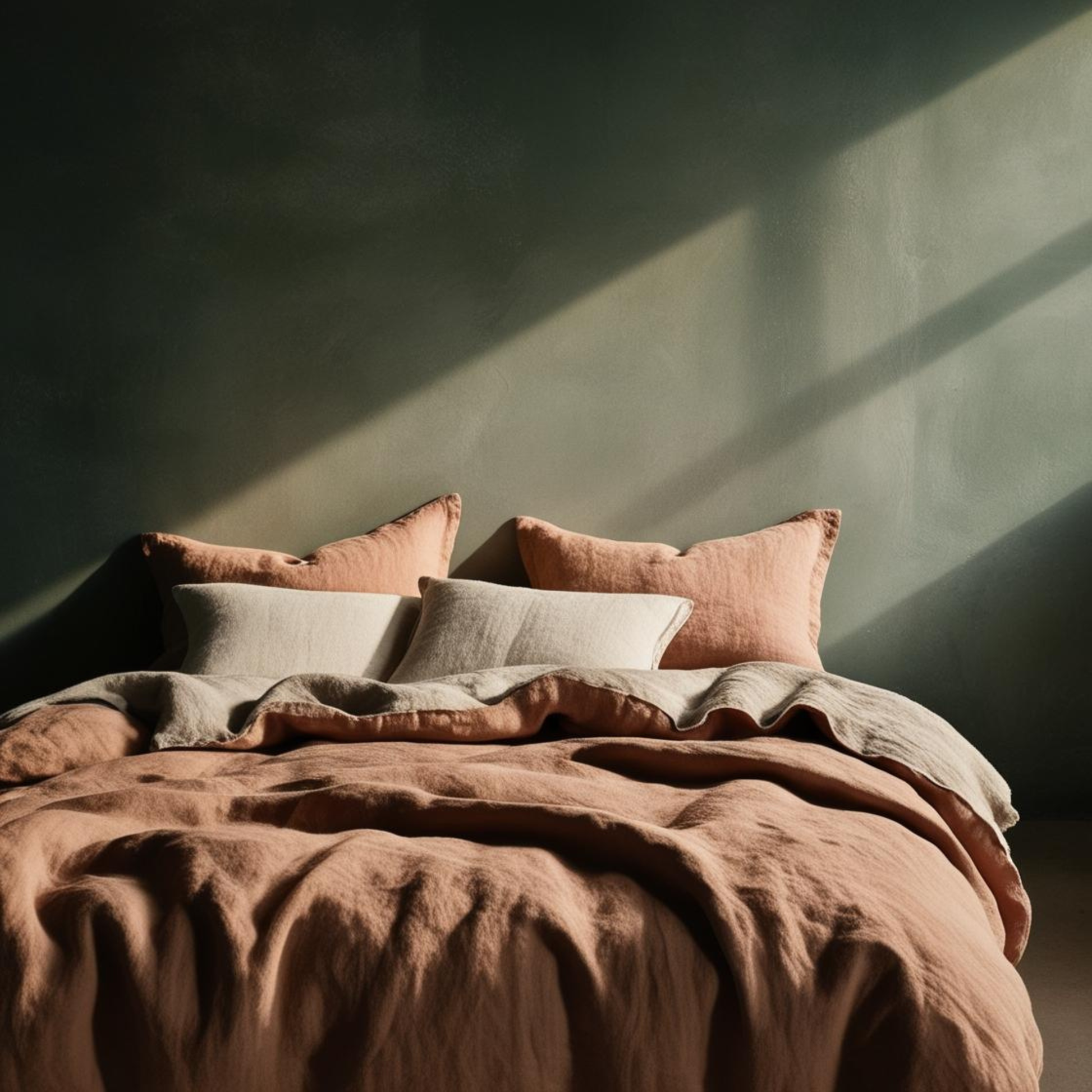 Ves haciendo tu juego de cama poco a poco, combiando colores del mismo lino.