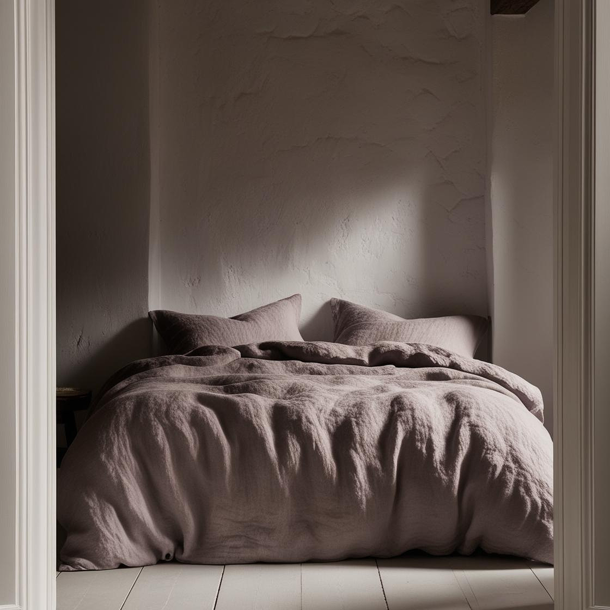 Funda nórdica de color berenjena de lino de 190gr/m2. Este color es muy muy especial. Lo puedes combinar con la bajera malva o con el lino blanco perla. Es un color muy bonito que le dará un aire a tu cama completamente diferente.