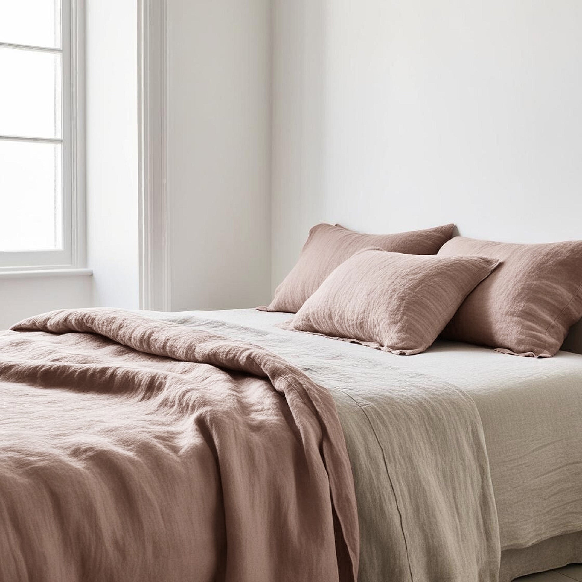 Funda nórdica, fundas de almohada y sábana bajera ajustable de lino lavado lino natural & rosa.