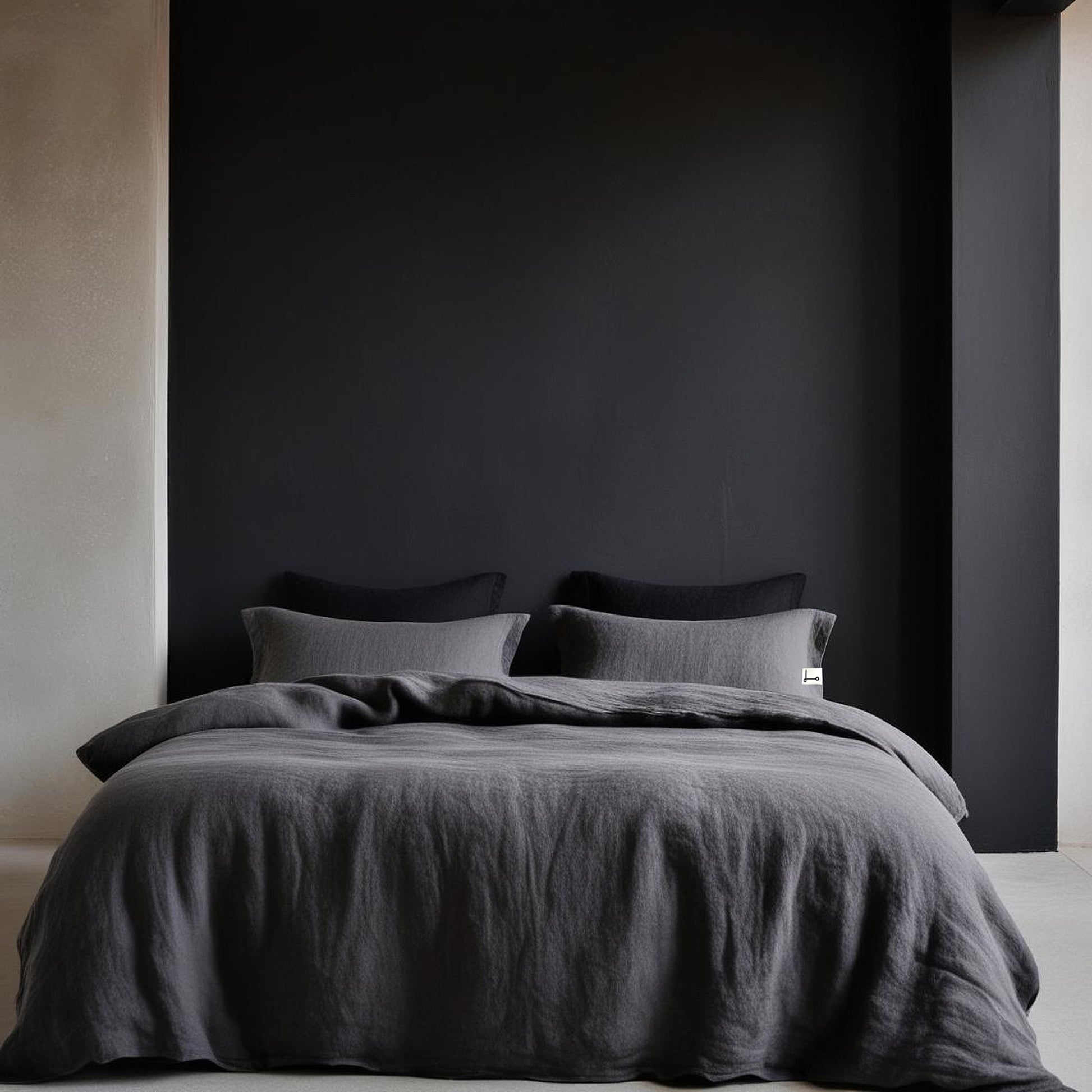 Juego de funda nórdica, fundas de almohada y sábana bajera ajustable de lino lavado. Un gris medio ideal para invierno o verano.