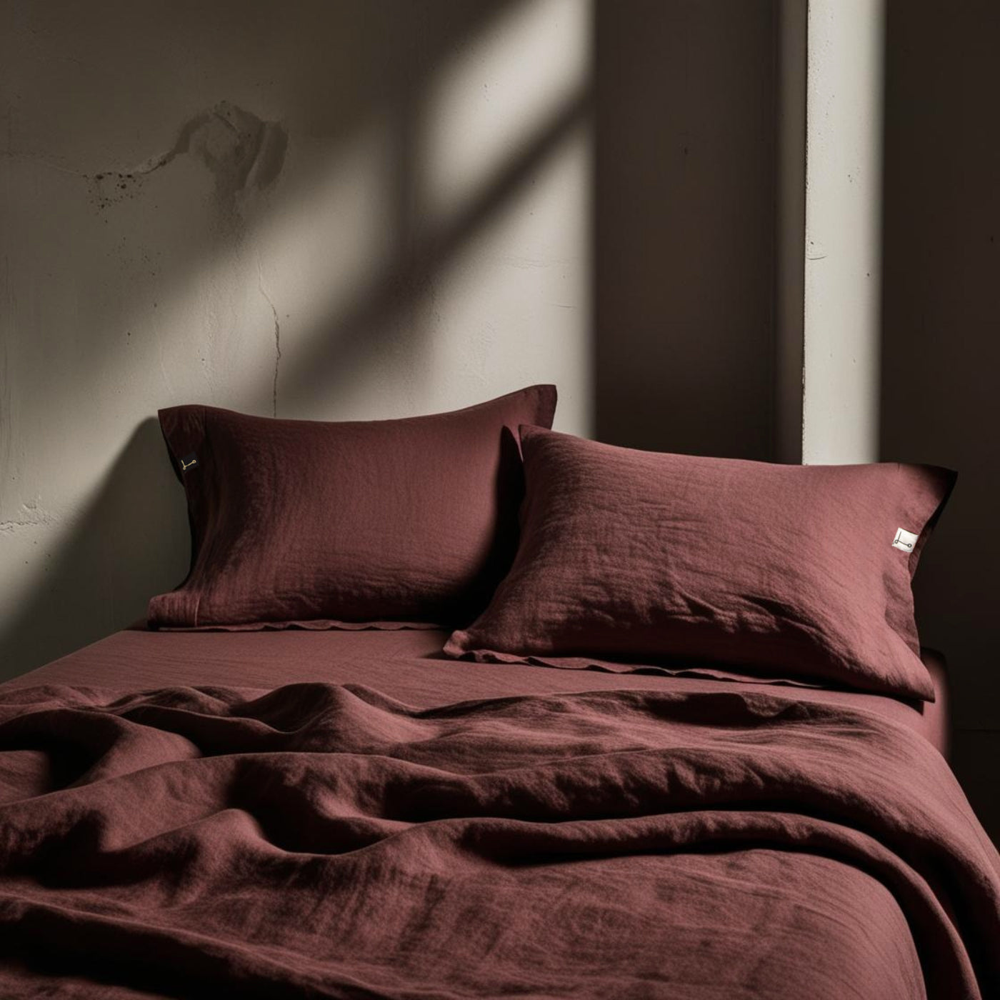 ¡Transforma tus noches de sueño en una experiencia de lujo con nuestro juego de sábanas de lino BURDEOS-190gr/m2! Con su suave y transpirable tela, este juego completo en color burdeos es perfecto para combinar con tu decoración de lino natural y brindarle un toque de elegancia a tu habitación.