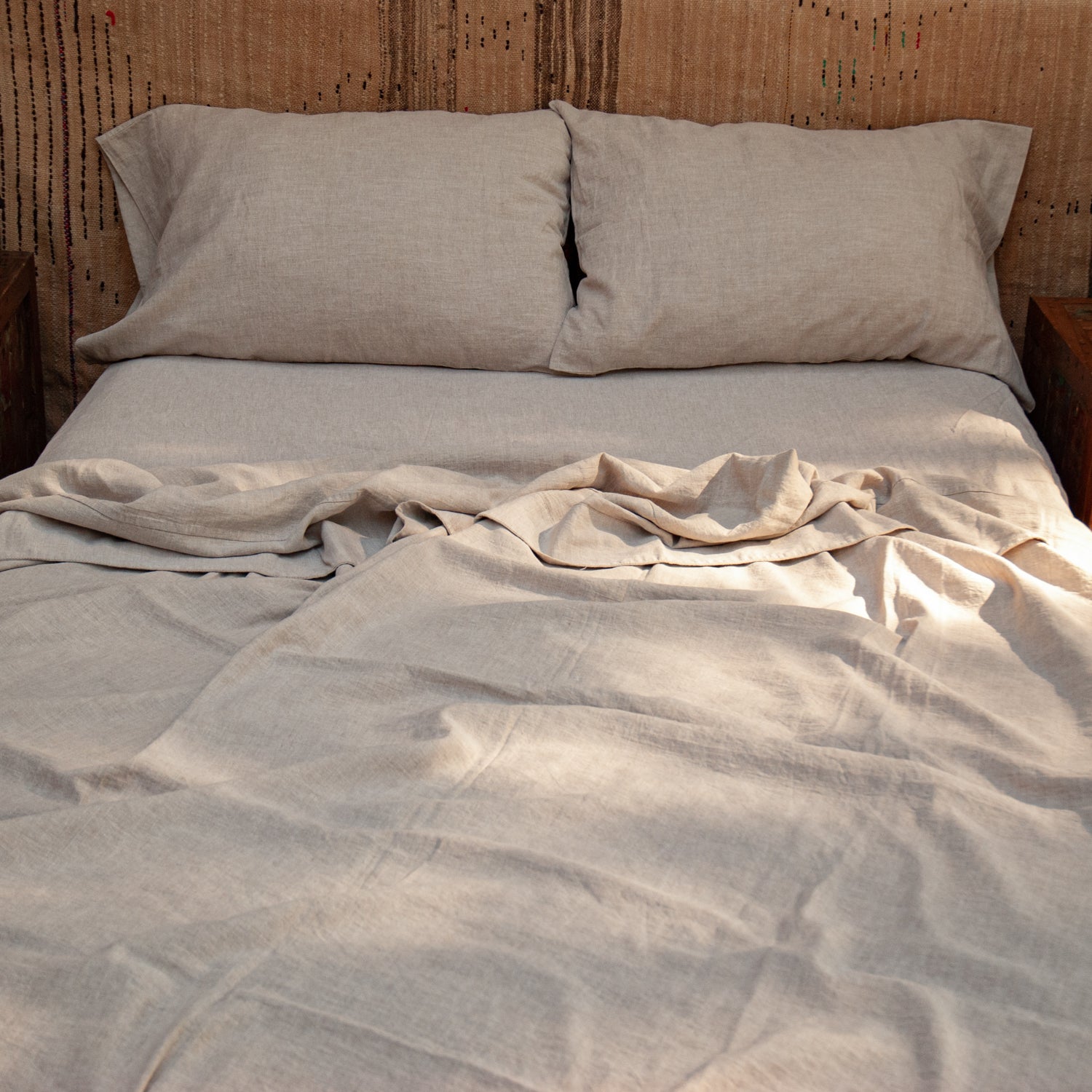 Sábanas de 100%LINO natural de 190gr/m2. Un lino pesado, con cuerpo, ideal para juego de sábanas. Pídenos las muestras gratuitas.