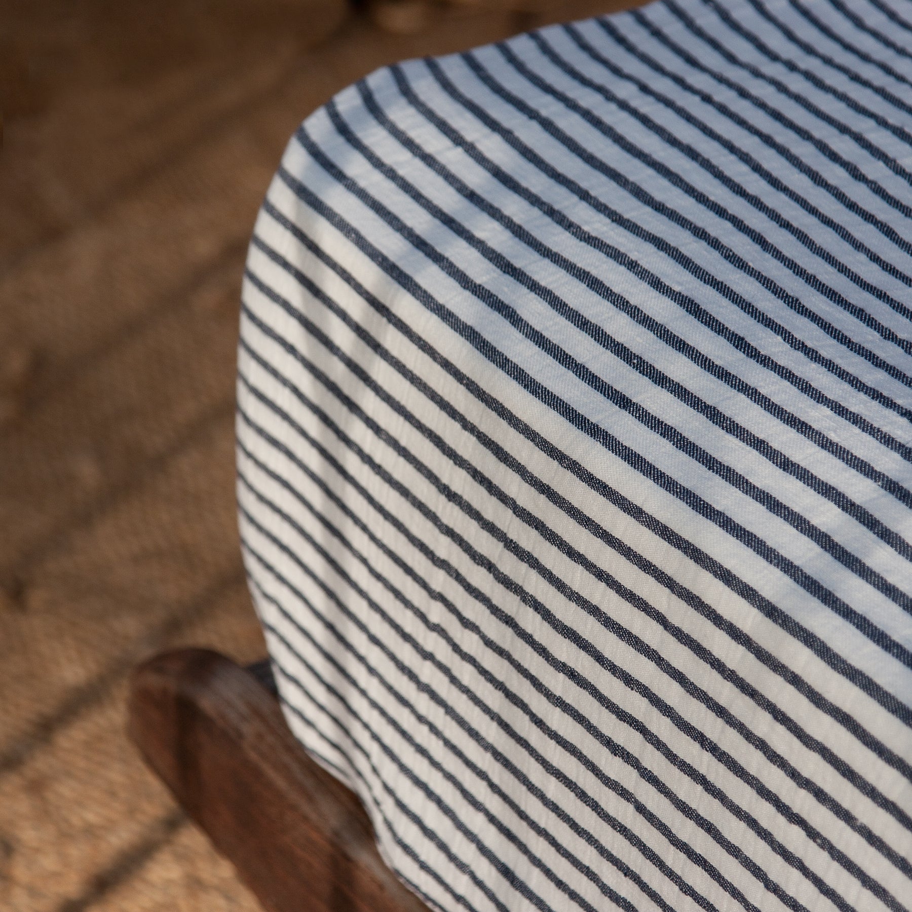 Juego de sábanas de 100% lino con rayas marineras rayas azules. ¡Con el cuerpo ideal para el juego de sábanas ! Sino te gusta todo el juego rayado, podemos hacerte la bajera blanca.