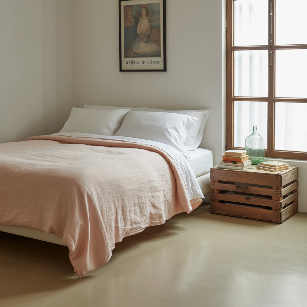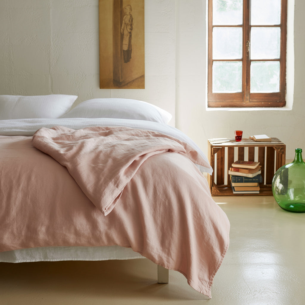 Juego de sábanas de 100% lino color rosa empolvado, lino lavado. Rosa suave del que nunca te puedes cansar. ¡Llévate la encimera, bajera y las fundas de almohada!