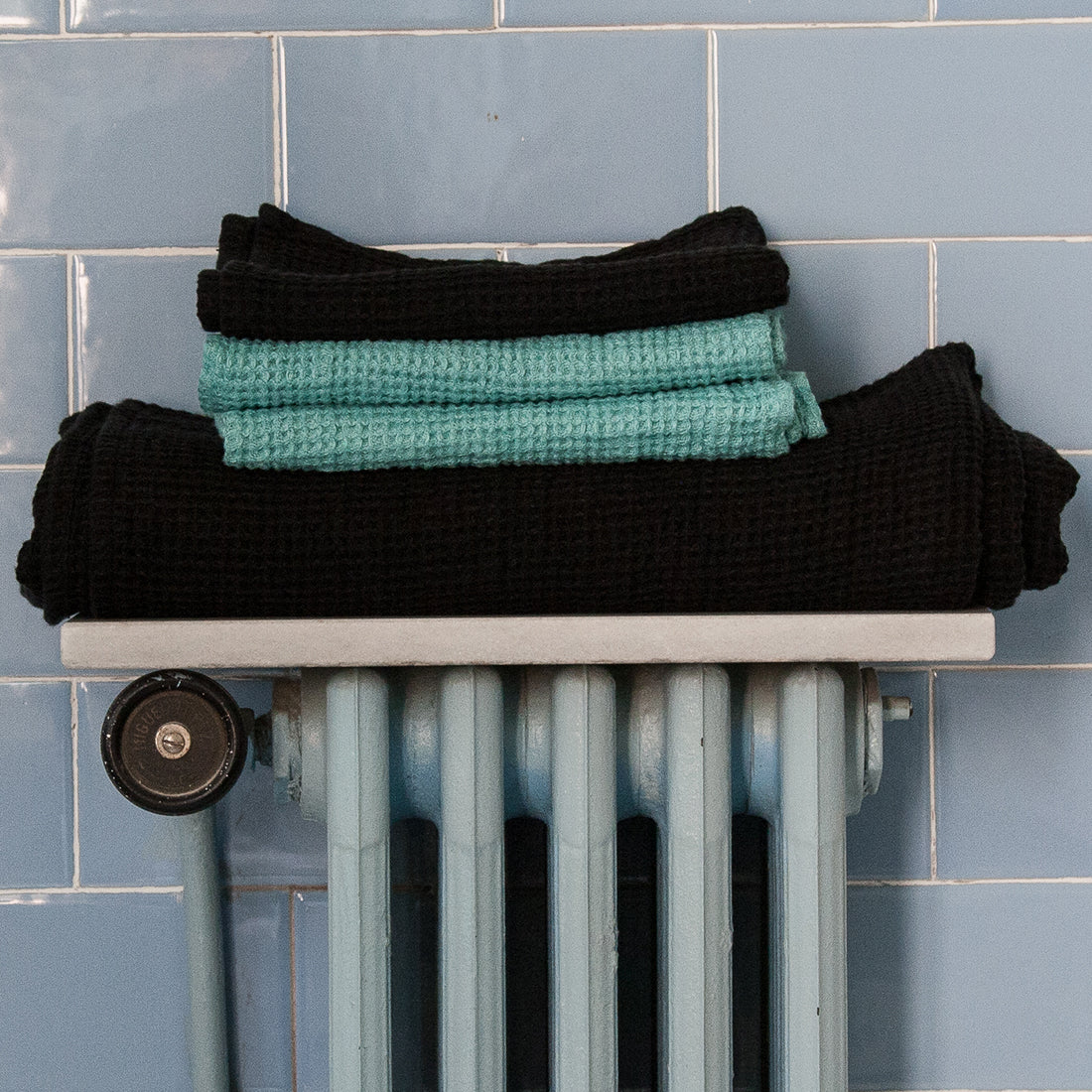 Juego de toallas gofre de lino VERDE AGUA