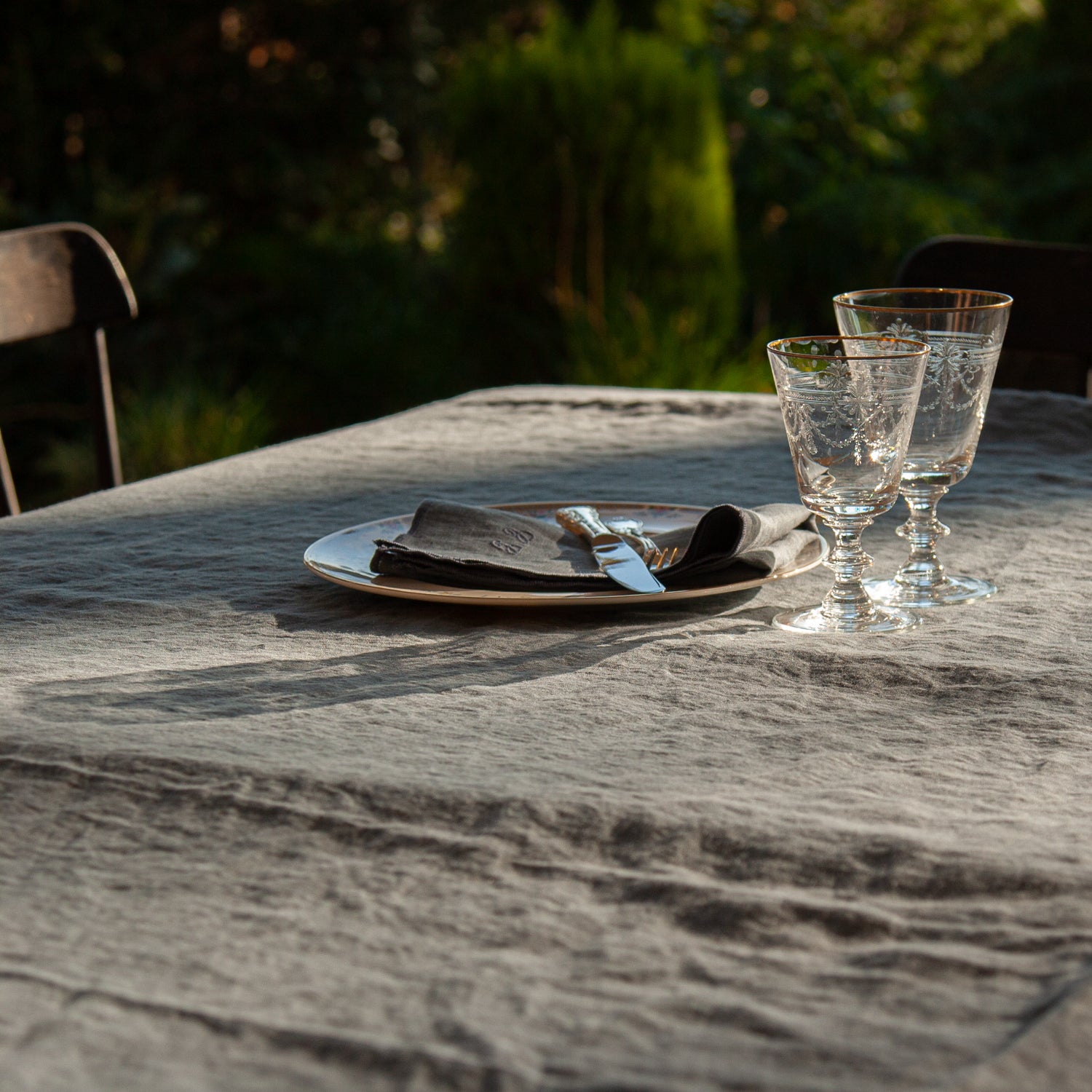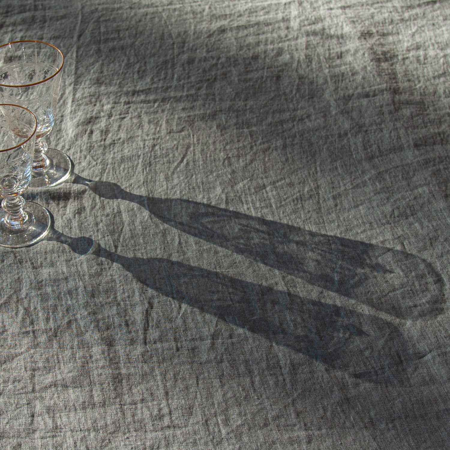 Mantel de lino lavado de 200gr/m2 de color azul agrisado suave que cambia con la intensidad de la luz. Puedes elegir acabado con orilla clásica o repulgo de cualquier color. Añade el muletón que proteja tu mesa y le de cuerpo y vuelo al mantel. Todos los manteles los hacemos bajo pedido; sino está tu medida escríbenos un email y te pasamos presupuesto.