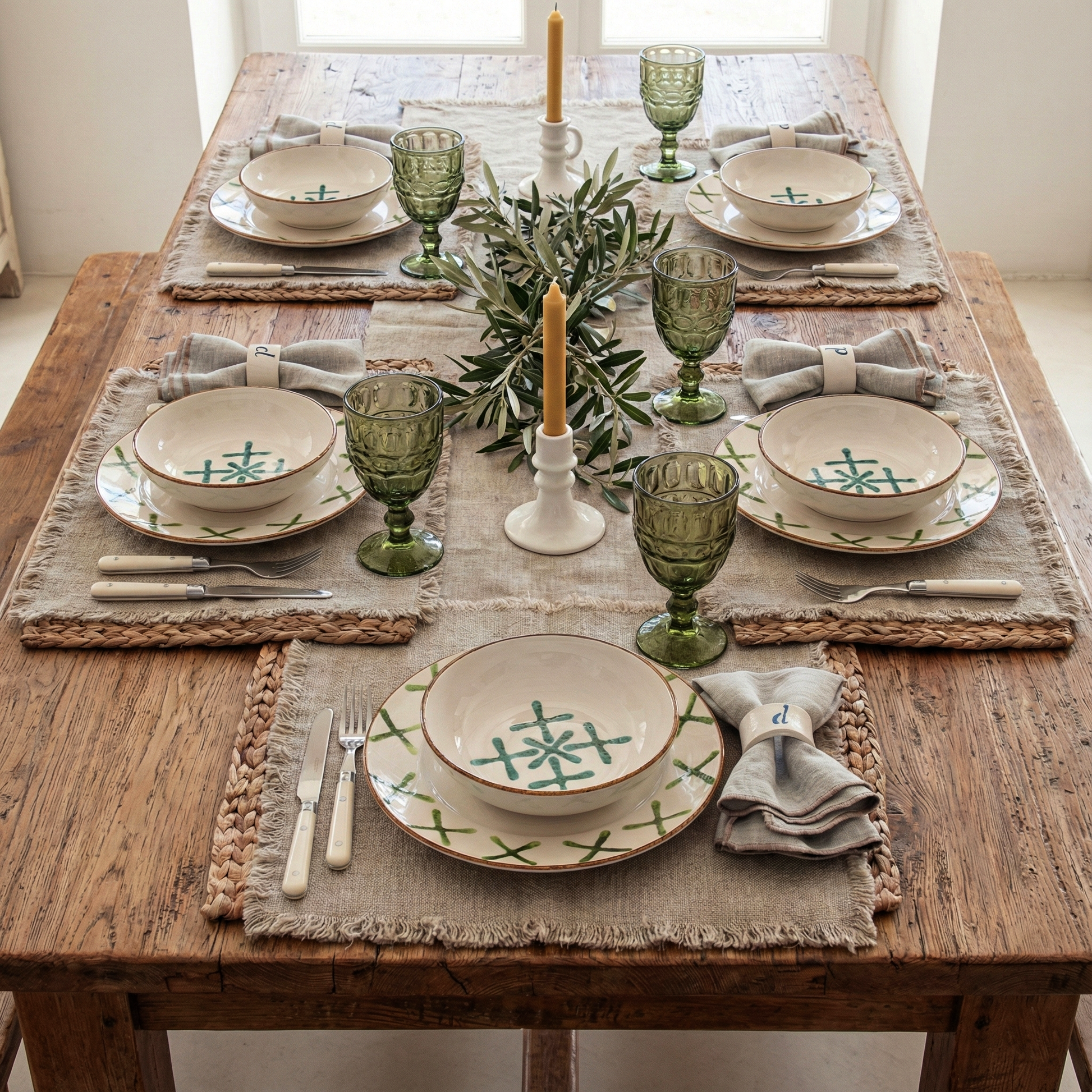 Algunas ideas:Combina los manteles individuales con tus mantelitos de esparto.