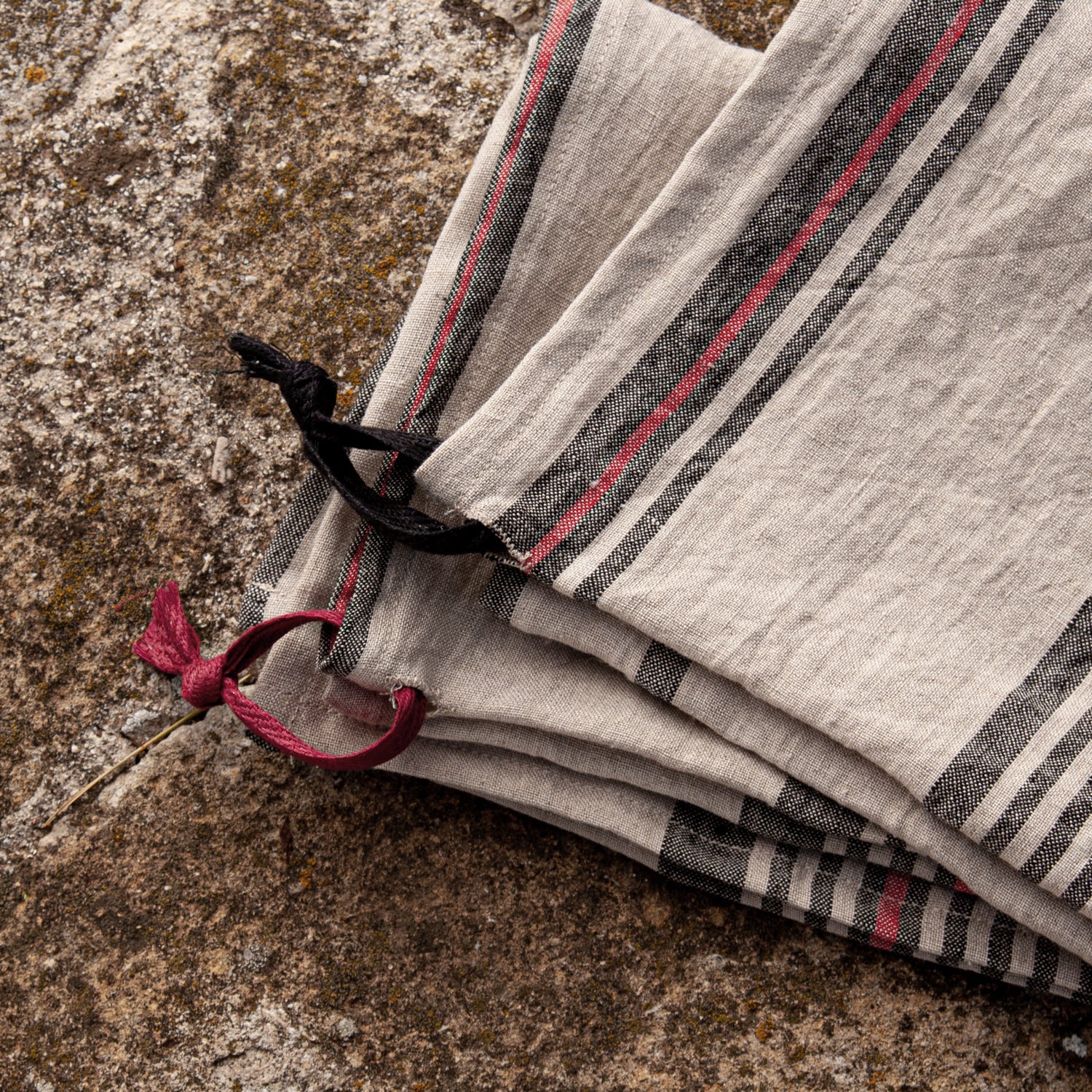Pañitos de 100% lino pensados para la cocina de tamaño aproximado de 45x65cm. Con ojales y cintas de lino para que puedas intercambiarlos cuando se estropeen.