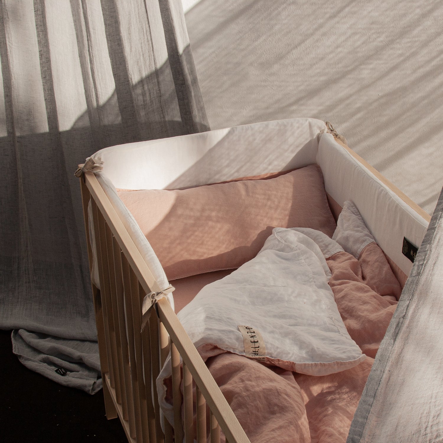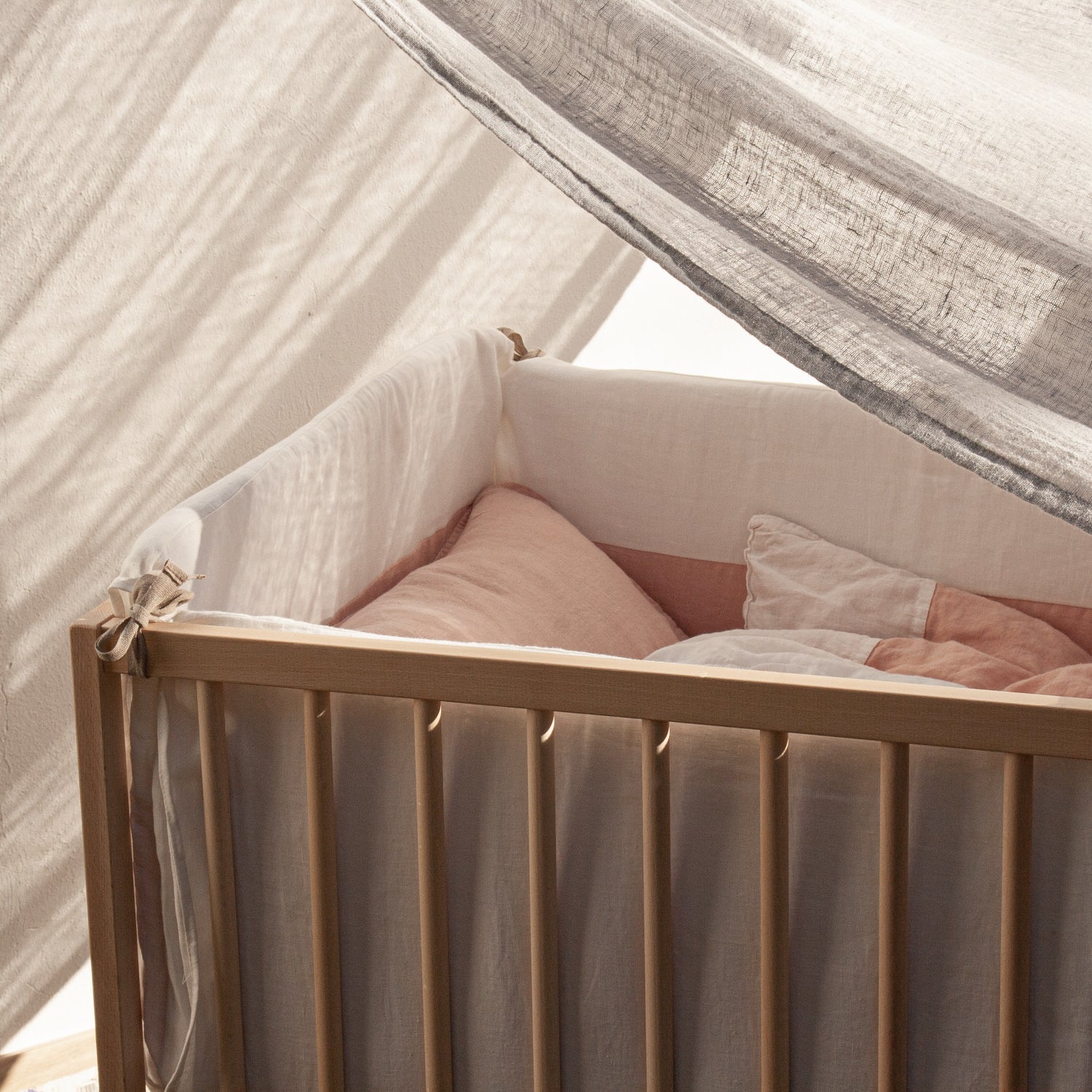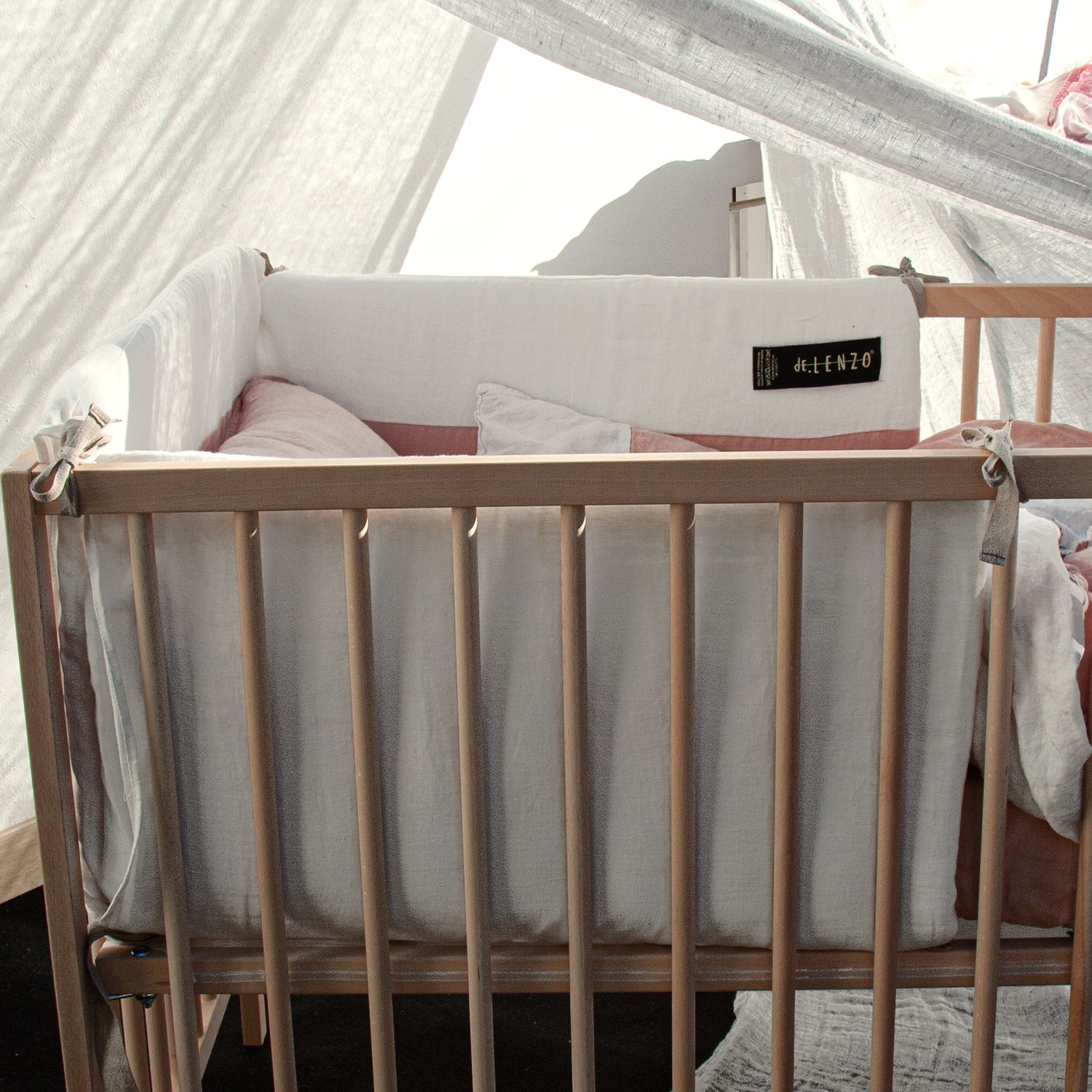 La chichonera o protector de cuna Mafalda es ideal para que el bebé no meta sus manos o pies entre los barrotes y se pueda hacer daño, además al ser de lino es suave y super acolchado. Un detalle importante es que el protector es desenfundable. Es apto para lavadora, secadora y no necesita plancha.