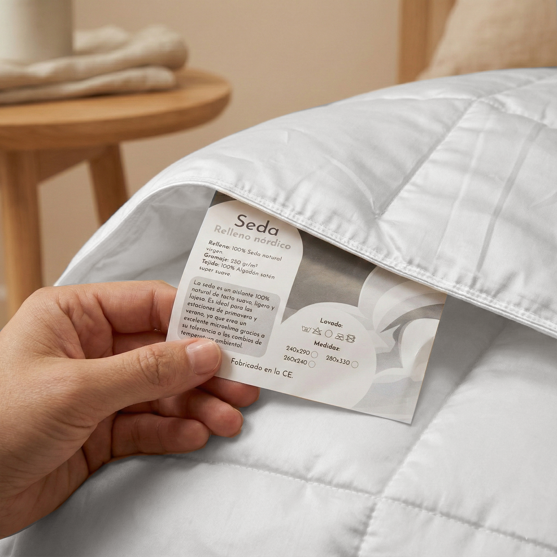 Interior 100% seda morera; Mulberry