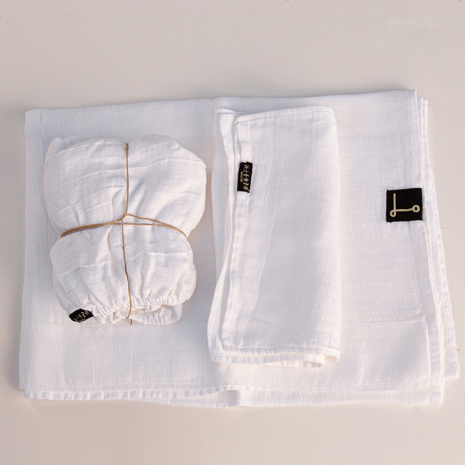 Ropa infantil para cuna hecha con 100% lino lavado de origen europeo, cuenta con el sello STANDARD 100 by OEKO-TEX® garantía de un proceso de fabricación certificado y controlado, respetuoso con tu piel.