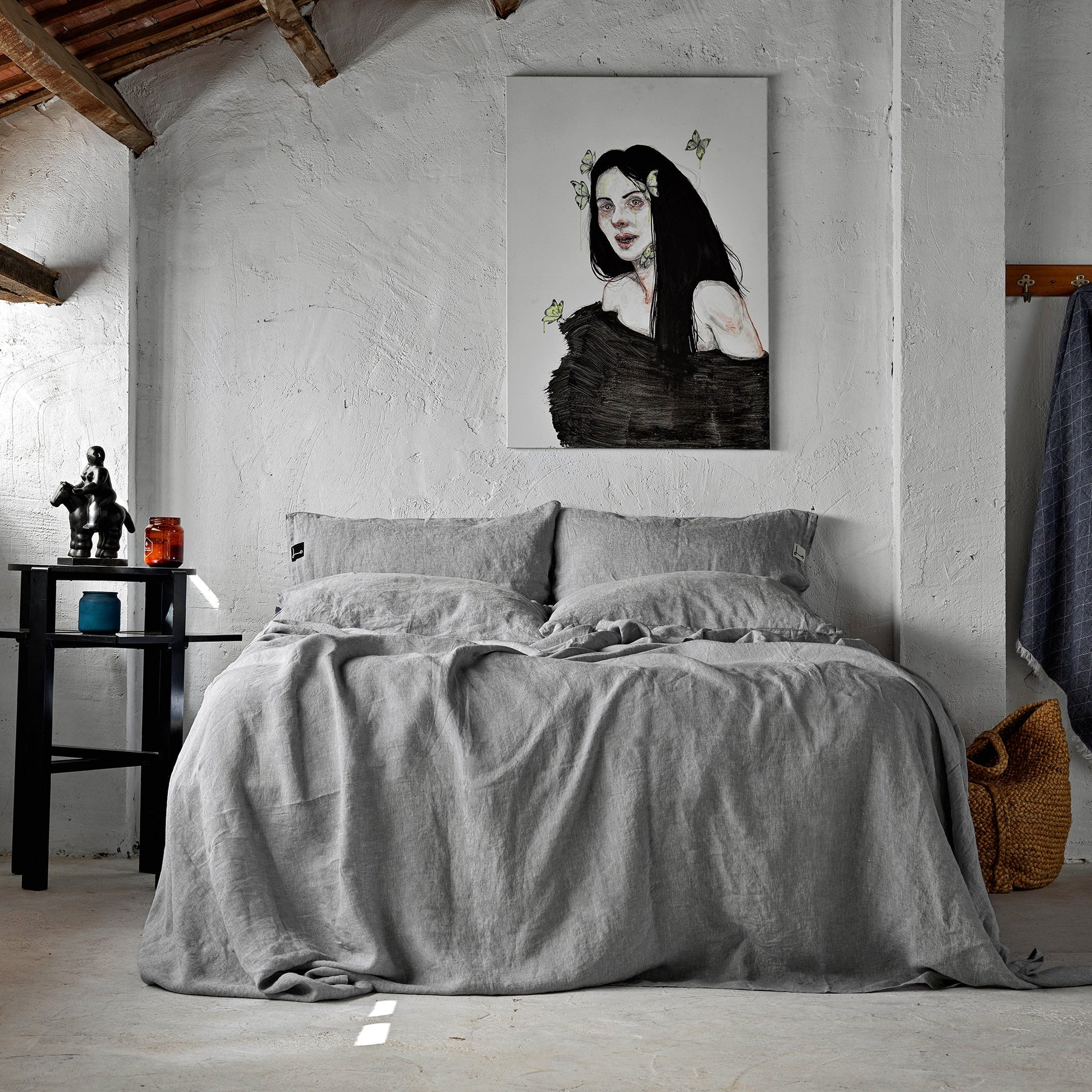 Sábana bajera ajustable de lino 100% lavado de tacto perfecto.