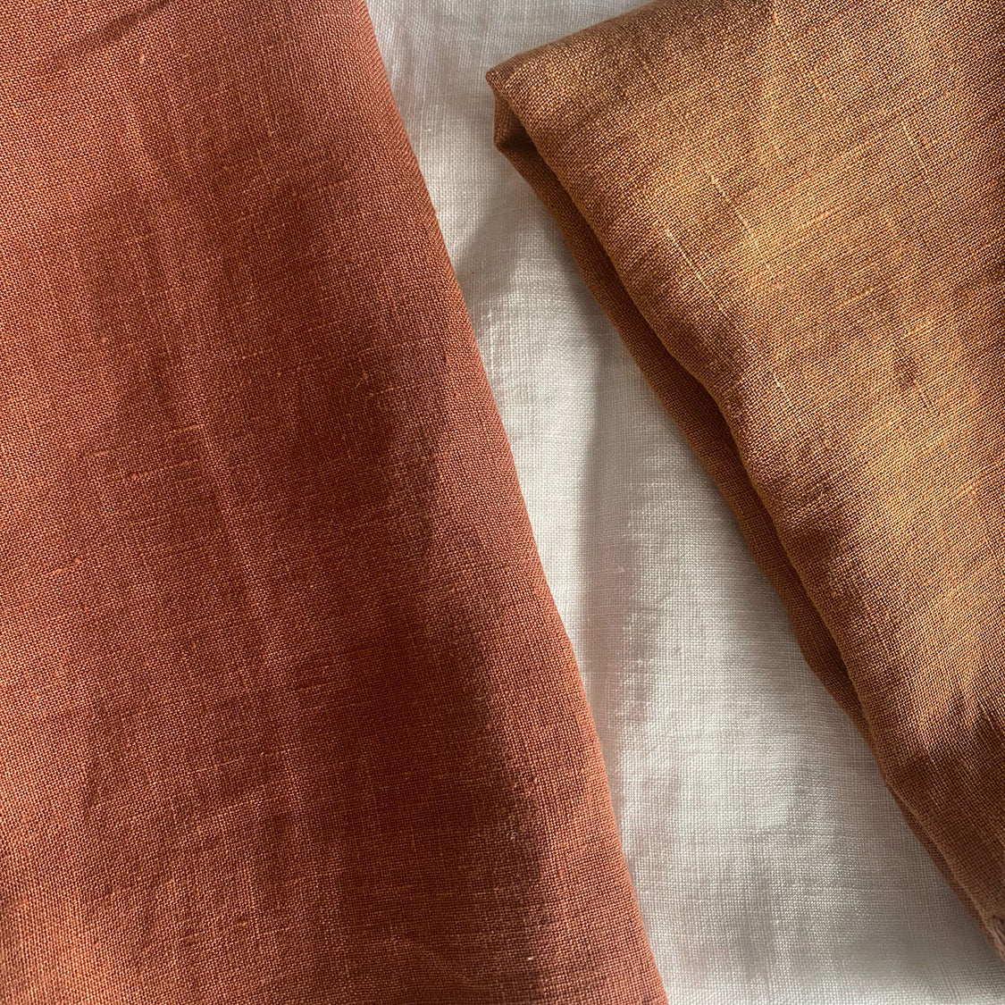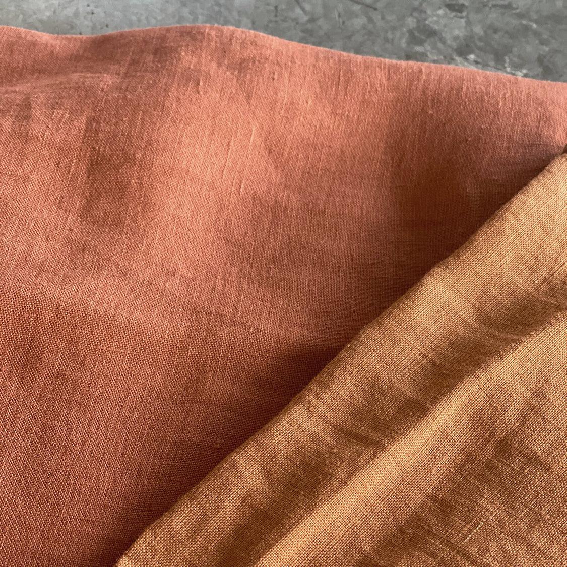 Sábana bajera ajustable de lino100% lavado. Un color teja, anaranjado, ,muy acogedor. Puedes combinarla con una funda nórdica de color azul plomo. Su combinación ideal si no quieres el mismo color en todo tu juego. El color terracota es muy parecido pero algo mas oscuro y rojizo. Ver última foto comparativa.