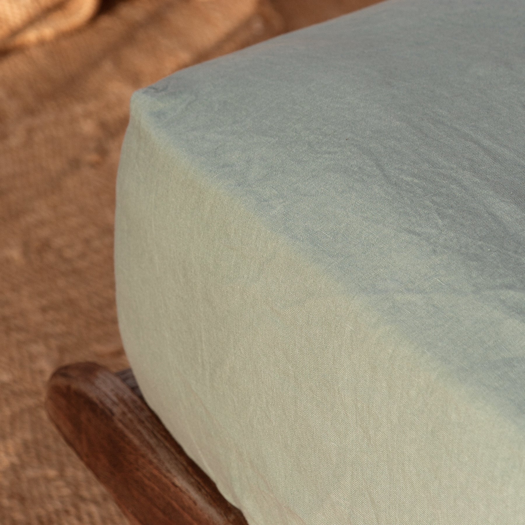 Sábana bajera verde laurel, lino lavado. Ideal para combinarla con linos blancos, negros o naturales.