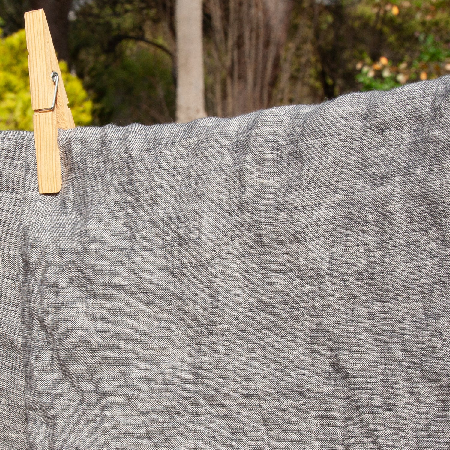 Sábana de lino negro jaspeado. Perfecta para combinar con las fundas de almohada jaspeada negras de su mismo juego. Para combinar con blanco es ideal porque realza el jaspeado. Este lino es perfecto para sábanas por su gramaje.