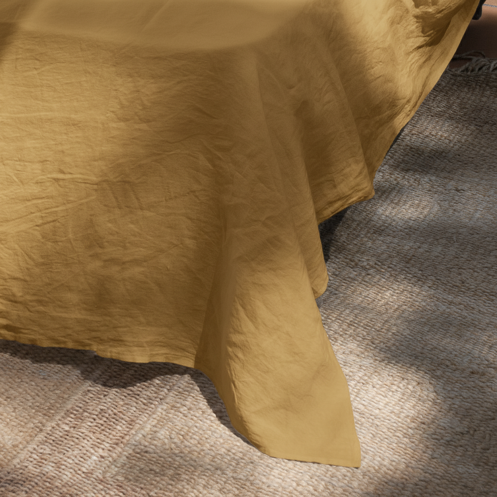 Sábana encimera de lino lavado con amplio jaretón en la parte superior.