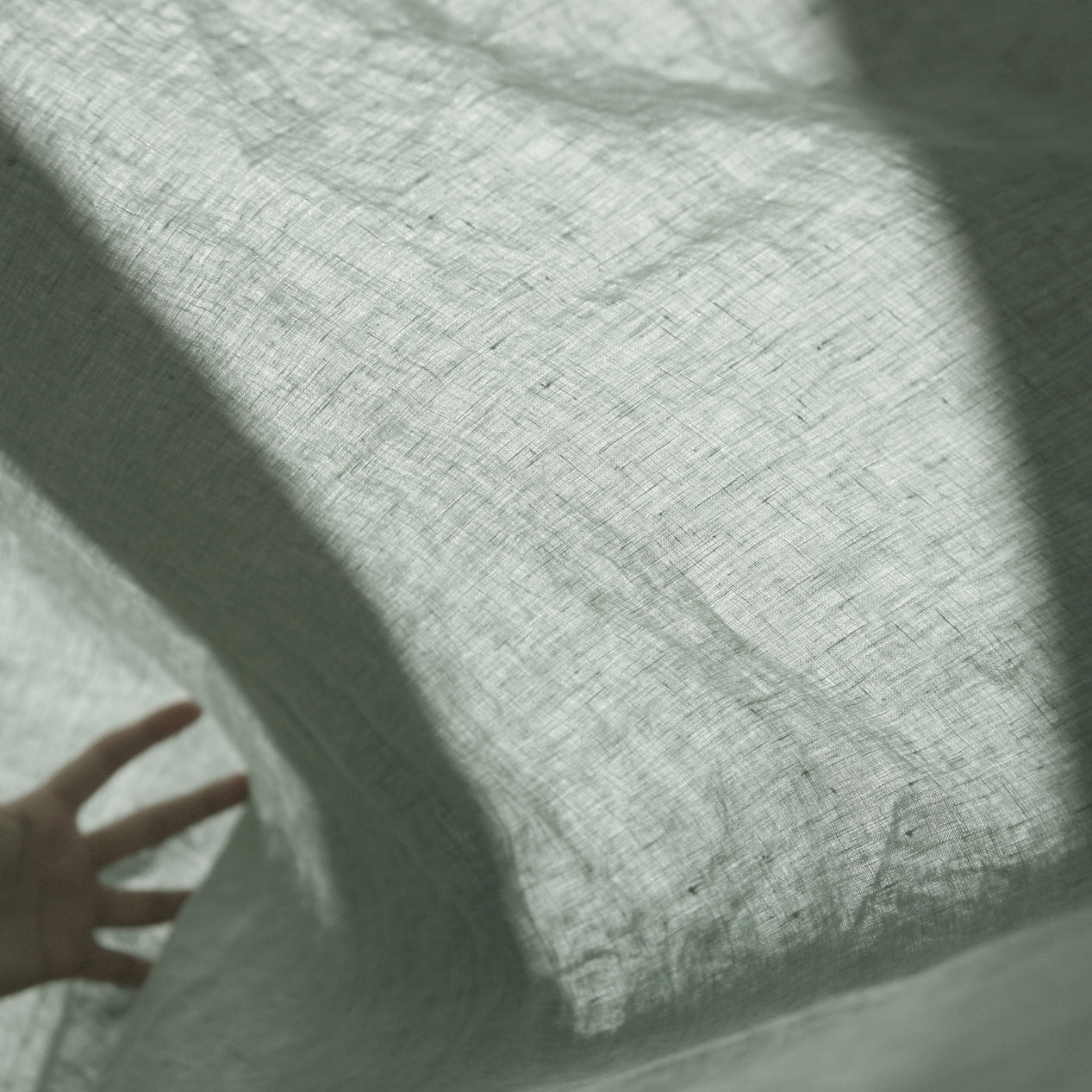 Encimera de lino verde laurel.