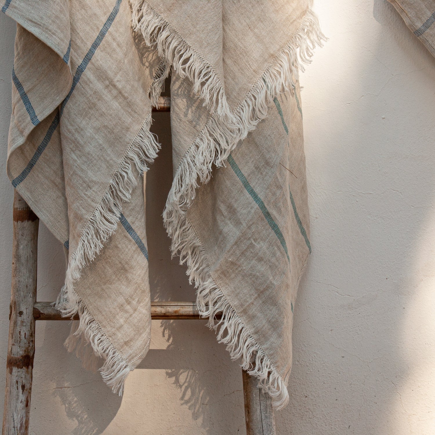 - Toalla/Mantita de 100% lino lavado de 115cm x 200cm de 234gr/m2